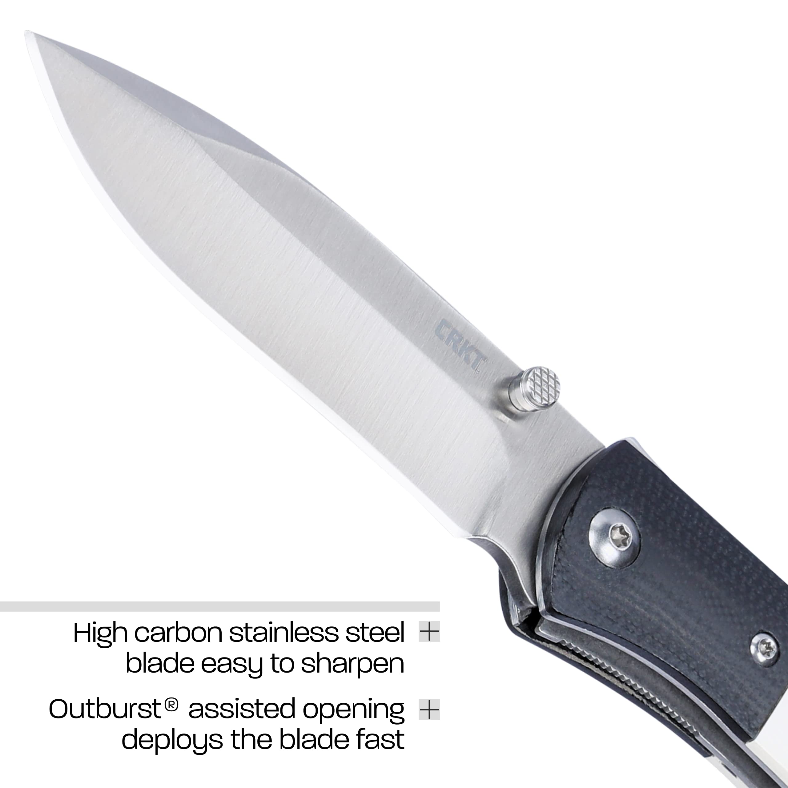 A fresh take on a classic. The late, great knifemaker Kit Carson is widely known for his M16® design, but his most consistent selling custom model has been his classic M4™. This latest version, the M4™-02M, features a striking satin-finish blade and a handle made of white, resin-infused fiber with black G10 bolsters. It’s not just a great-looking M4™, it’s one of the classiest folding knives you can get. The rest of the knife is every bit the same M4™-02 that fans know and love. The 3.25-inch drop-point blade is made of a high carbon steel that’s easily maintained and the handle is hand contoured like a Carson custom. Outburst® assisted opening returns for blazing-fast action, and all M4™ models feature dual thumb studs for ambidextrous one-hand operation and pocket clips for low-profile carry. The simplicity of the M4™, which demonstrates Kit’s form-follows-function approach to design, has made it incredibly popular among knife enthusiasts who need a trustworthy everyday carry. The M4™-02M is proof that you don’t need to reinvent the wheel to deliver a standout new knife.