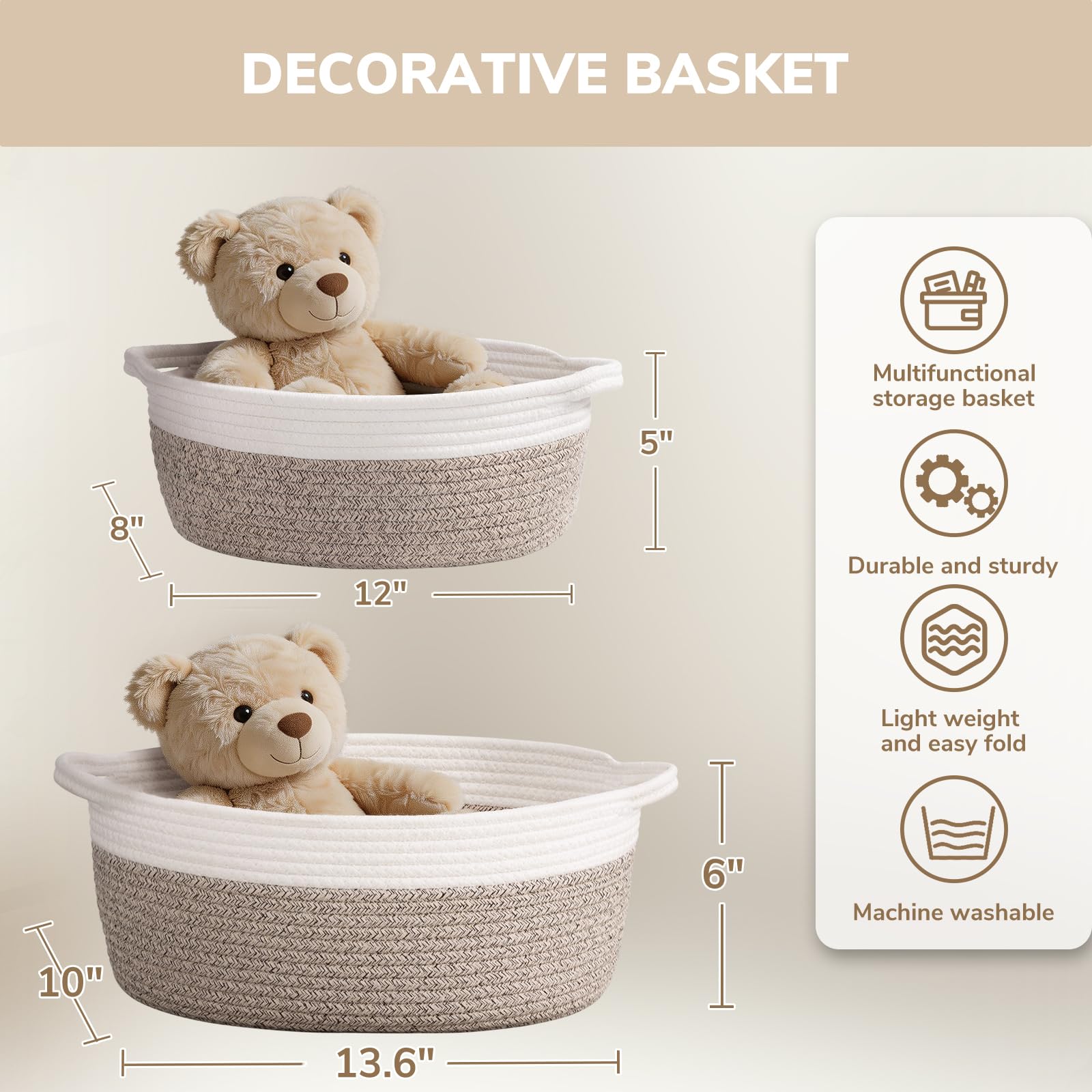 Ideal Size: Measuring at 13.6 x 10 x 6 inches, this decorative basket is perfect for baby shower gifts, storage of baby clothes, toiletries, and towels. It's the perfect size to keep all the essentials organized and within reach