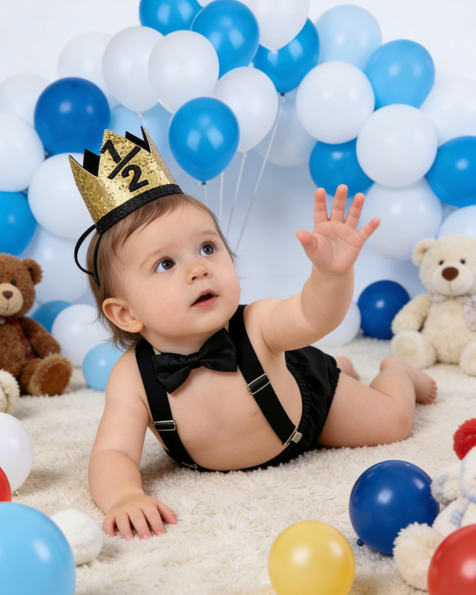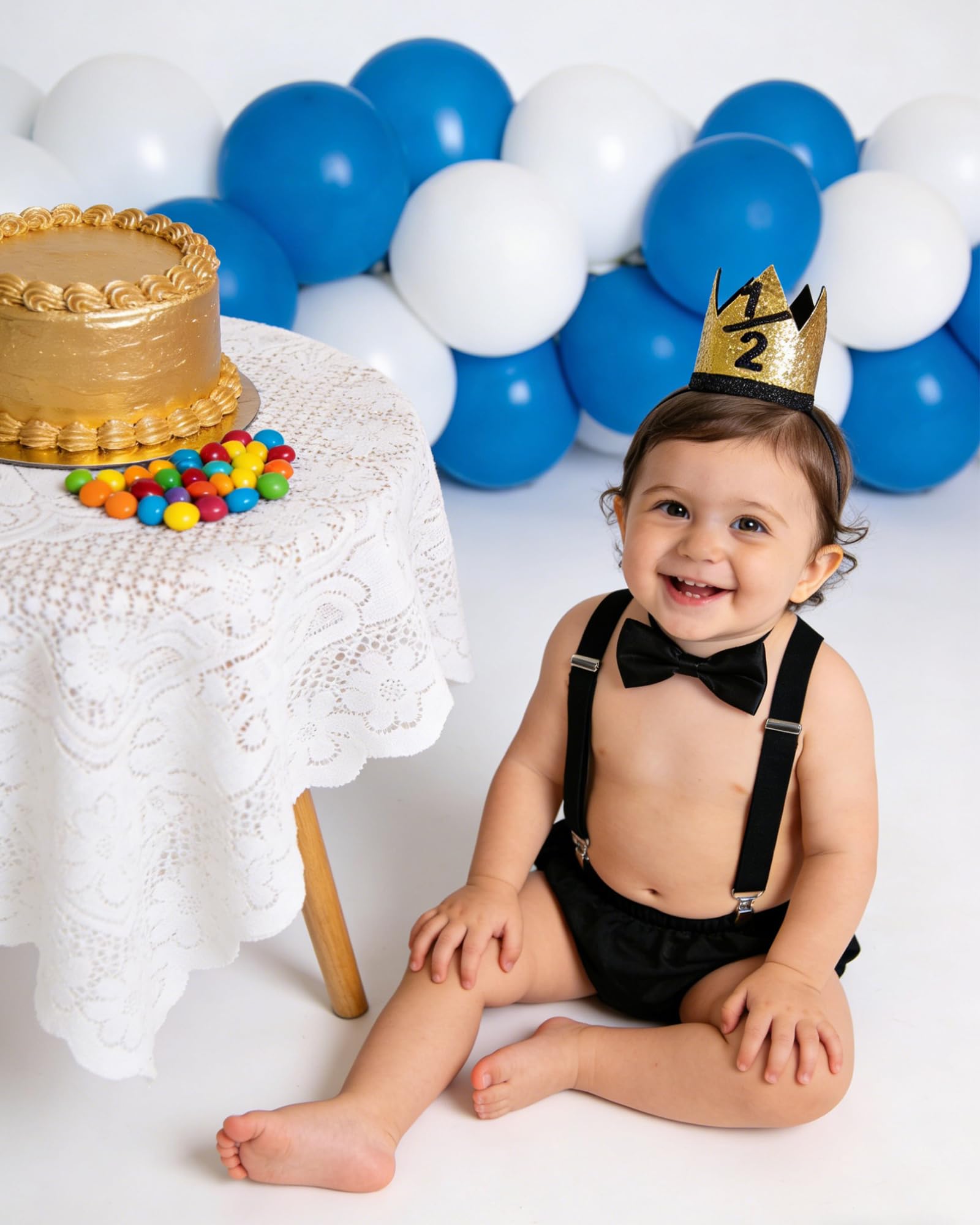 【Size】: Cake pants:waist: 16.1-21.6"/41-55cm, length (waist to crotch): 7.87"/20cm. Suspenders:max length: 25.0"/63.5cm. Bowtie: the 2 * 4'',circumference: 12-17.7"/30-45cm. Crown: 7 x 8CM, 2.7" x 3.1"