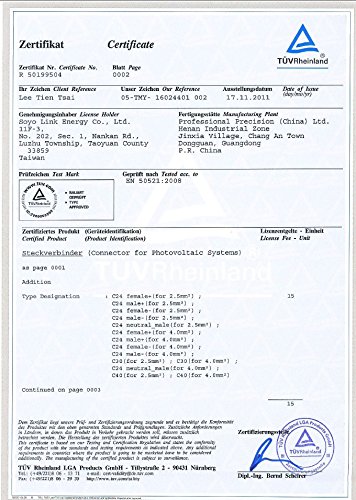LONGER WORKING LIFE: PPO material with excellent aging resistance and UV endurance, keep working in rain, high force winds, and snow for more than 20 years! We provide an 18 months warranty for solar connectors, please contact us directly if you have any problems during use.