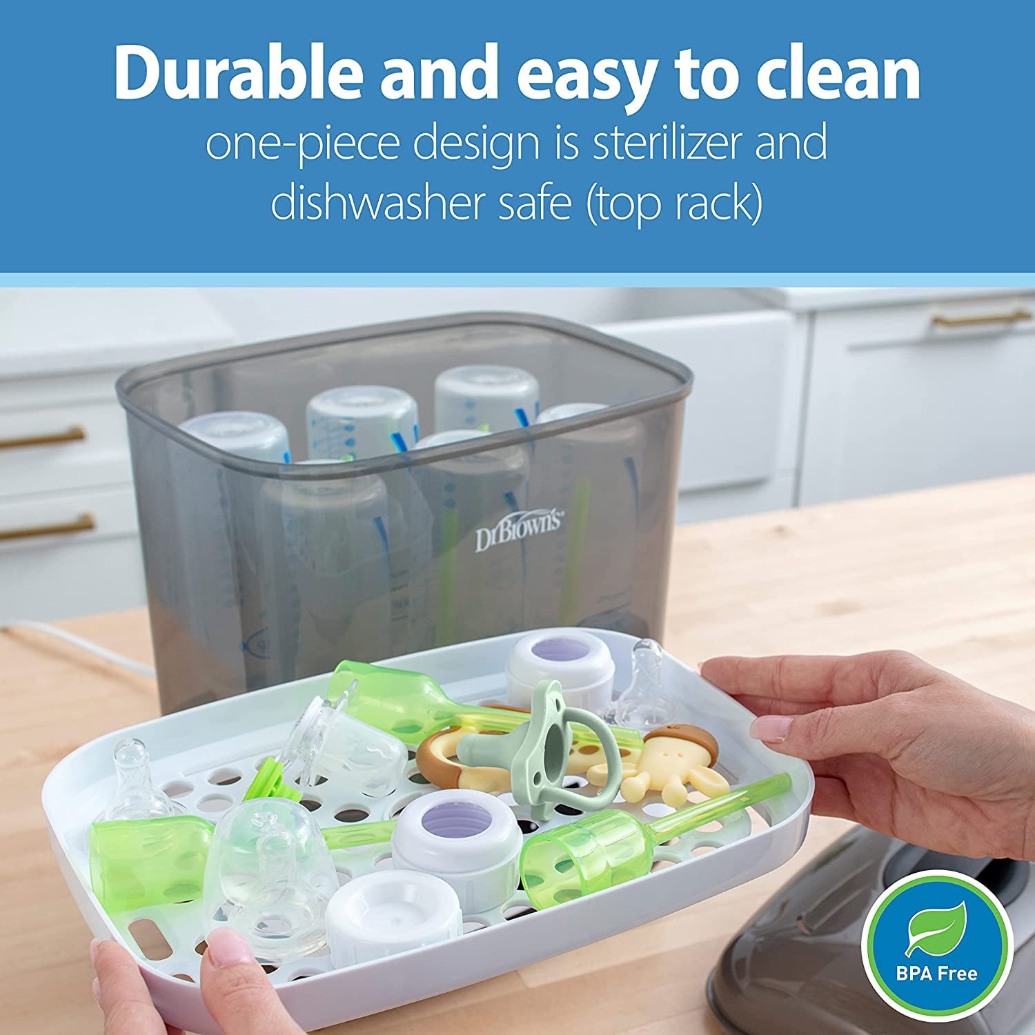 DURABLE AND EASY TO CLEAN. The one-piece construction makes the silicone pacifier ideal for simplified cleaning. Dishwasher (top rack) and sterilizer safe.
