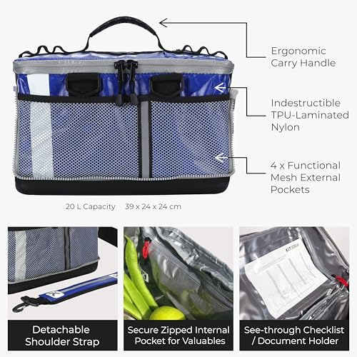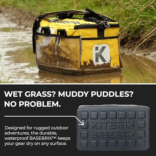 EASY TO WIPE CLEAN: PERFECT FOR MUDDY GEAR β Crafted from water-resistant TPU-laminated nylon with wipe-clean surfaces inside and out, the KitBrix is ideal for muddy outdoor sports. The waterproof BASEBRIX allows you to place it on wet pitches, lakeside mud, or grassy fields. Stands upright on any surface for easy access.