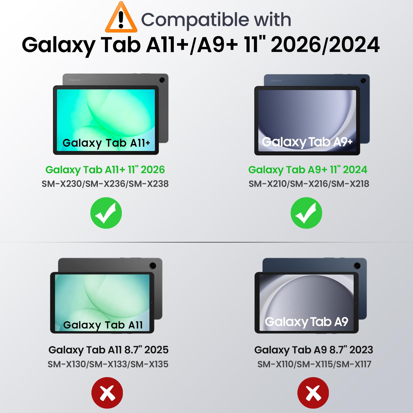 Compatibility: Only designed exclusively for Samsung Galaxy Tab A11 Plus 11-Inch 2026 Release (Model: SM-X230/SM-X236/SM-X238), Samsung Galaxy Tab A9 Plus 11-Inch 2024 Release (Model: SM-X210/SM-X216/SM-X218). Access to all features and controls.Please check your size and model before purchase