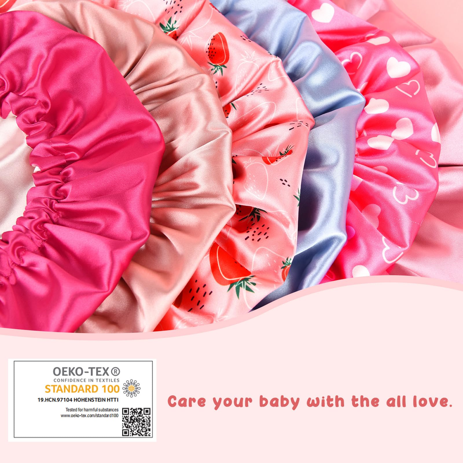 Wide application: these kids satin bonnet can be applied for children's sleeping cap, washing cap, and tools for girls to fix their hair while they are making up, washing face, or showering; The silk surface of the double layer design reduces friction between your baby's hair and pillow, preventing frizz, tangles, and hair loss