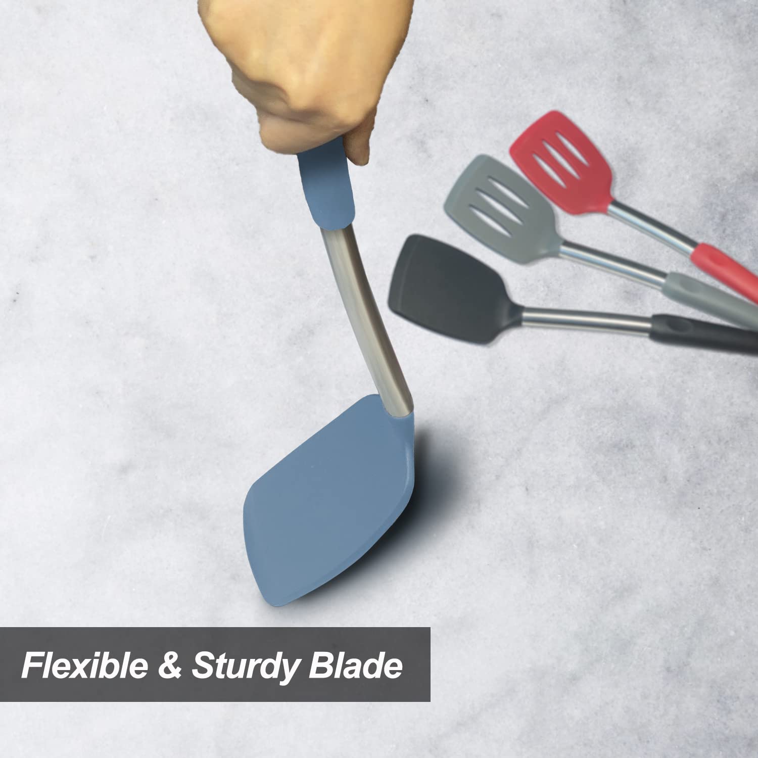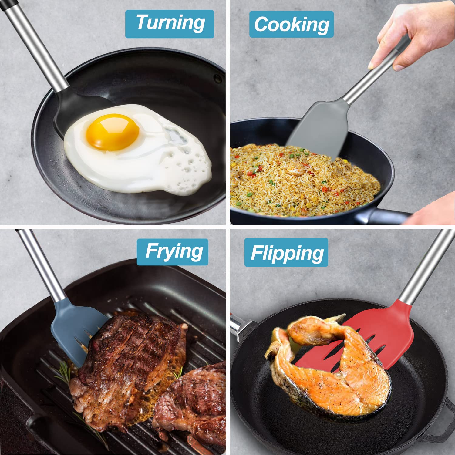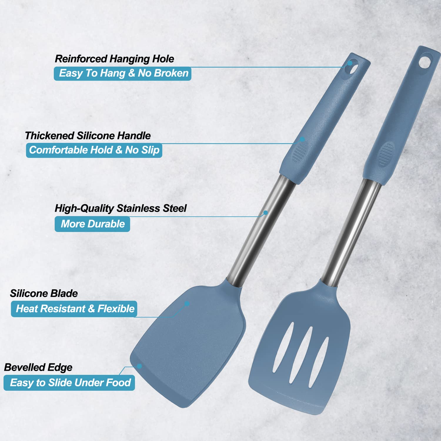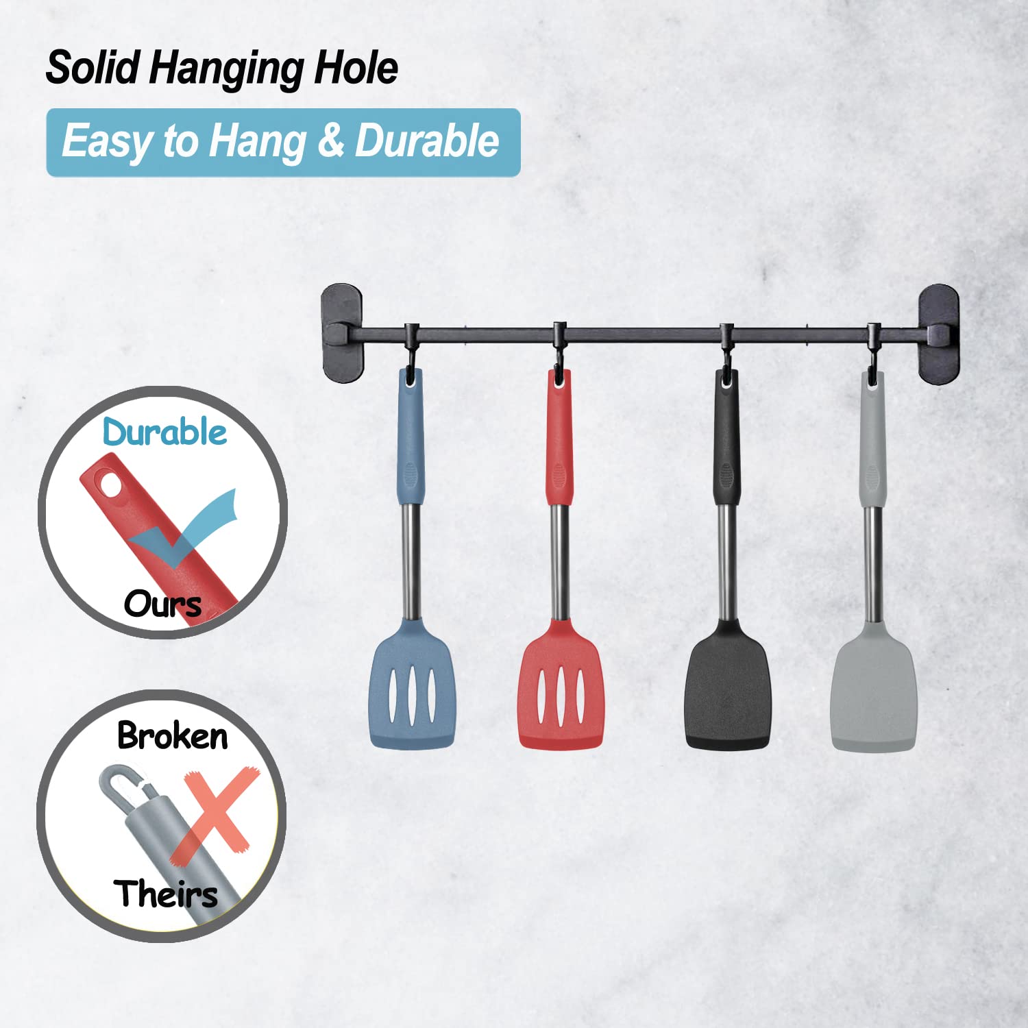 Lasting Long: This silicone spatula set turners are made of high quality stainless steel, premium silicone with thoughtful design, to avoid blade and handle melting, and the strengthened hook is noway to break as other generics