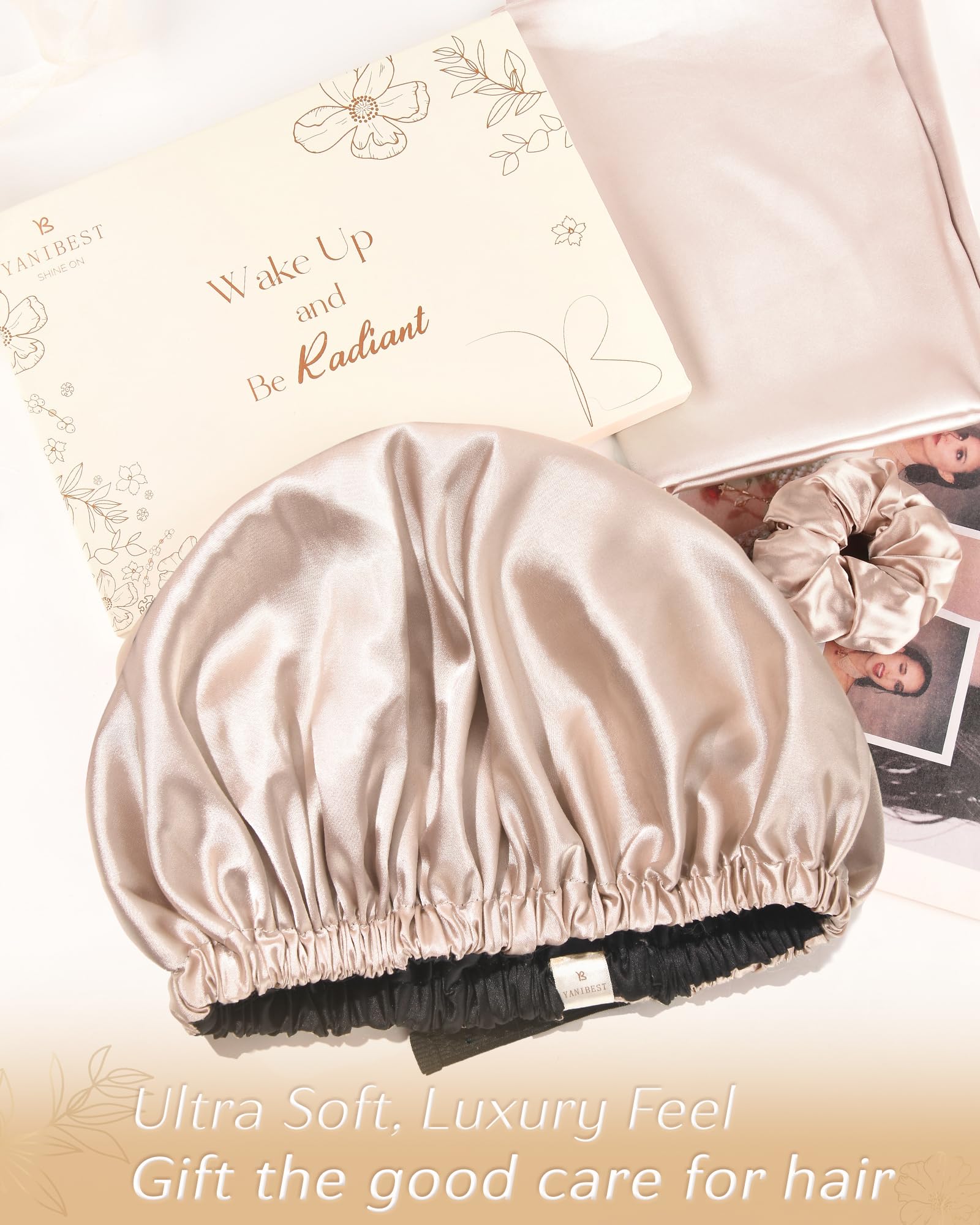 Butter Satin Bonnet: Exclusive high quality long filament satin, ultra softer, luxury feel,as smooth as butter, reducing friction to skin and hair,keep it hydrated and soft.Solution to hair breakage, bedhead,split ends,and dry skin