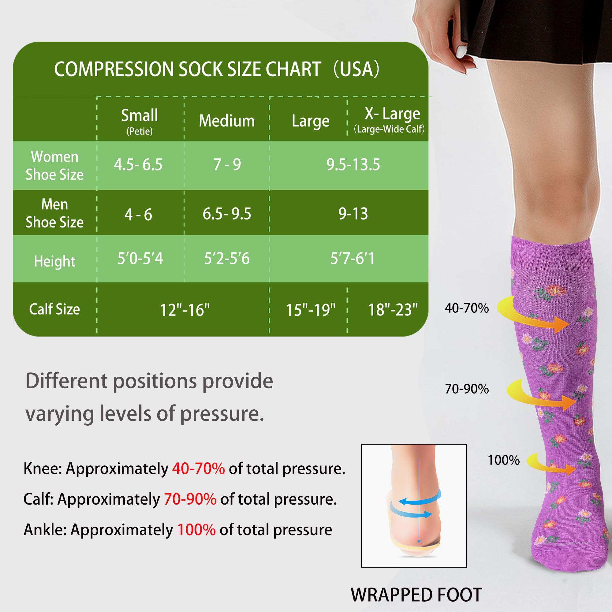 Graduated Compression Socks: Compression socks for Nurses have excellent elasticity and apply pressure to the legs starting from the ankles and gradually decreasing. support socks for women compression provide appropriate and comfortable pressure in different areas, effectively improving blood circulation, keeping you comfortable all day long!