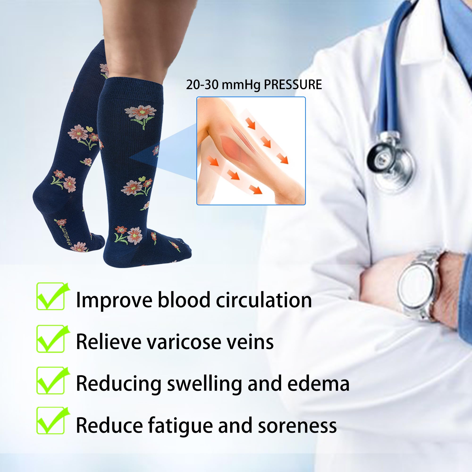 Medical Compression Socks: Compression socks for women 20-30 mmhg knee high offer significant medical benefits, such as reducing swelling and edema, managing varicose veins, etc. These compression stockings are especially helpful for individuals who stand for long shift work, medical professionals, pregnant women, and long flights.