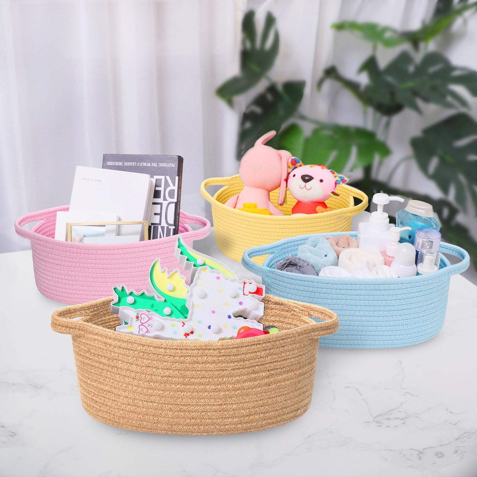 Soft Basket: Made of durable cotton rope, natural, chemical-free, skin-friendly, woven basket safe for baby and pets, scratch-free to floors or walls