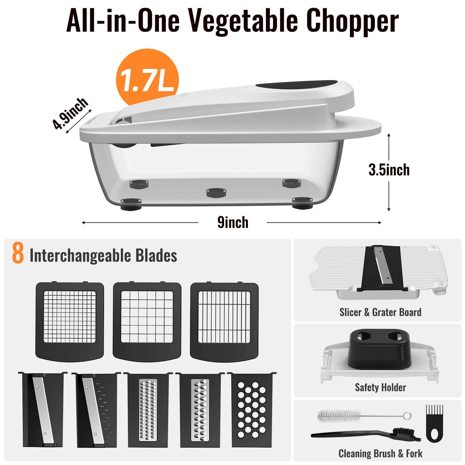 【Game Changer for Cooking】This 8-Blade All in One vegetable chopper makes slicing, dicing, and chopping quick and effortless, it’s a time saver and game changer for how you prep food in the kitchen.