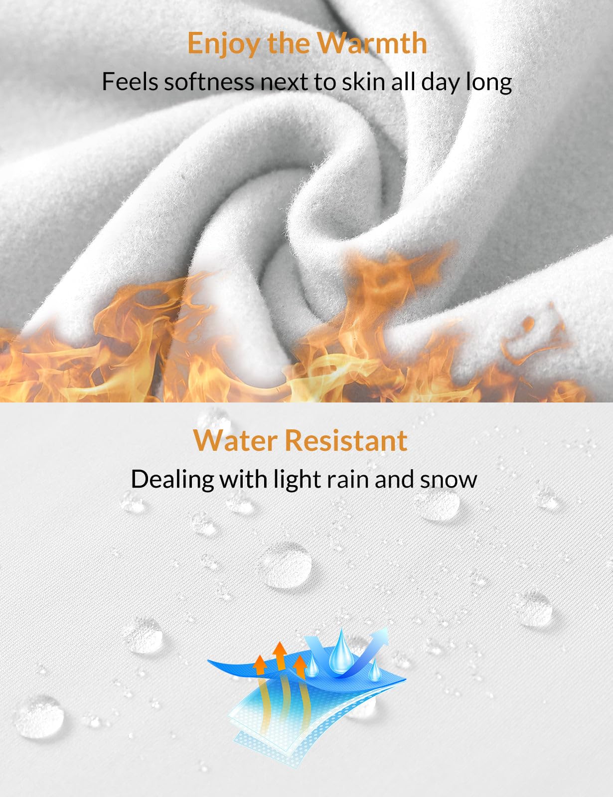 Fleece Lined: Soft fleece lining can withstand the severe cold and keep you warm, ideal for cold weather of 20°F-50°F