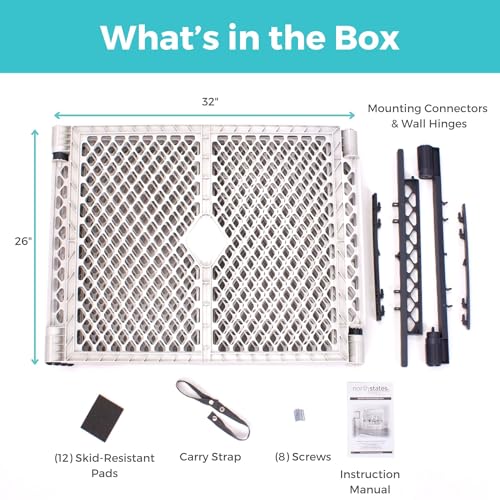 About the Superyard Duo Extra Wide Baby Gate & Play Yard: This travel play yard provides a safe place for your child to play. The versatile 2-in-1 design allows you to use it as a portable baby playpen or create an extra-wide safety gate with the included wall mount kit. The 6-panel play yard encloses up to 18.5 sq. ft. and is 26 in. tall. The baby gate is 38.5 to 201 in. wide. Our plastic playpen is the perfect solution for homes with open floor plans or large spaces that need blocking off. When used as a baby barrier, the hardware should be mounted into solid materials such as wood, metal, or a stud behind sheet rock. The kids fence features skid-resistant pads to prevent slipping and scratches on floors. Our plastic play yard is not intended for use at the top of stairs. This portable play yard creates a safe play space for use indoors or outdoors. Every Toddleroo by North States play yard is JPMA and ASTM certified. Our plastic gates and plastic play yards are made of non-toxic polypropylene and pigments that contain no heavy metals (no lead), no Phthalates or PVCs, and are BPA free. Proudly made in the USA. About Toddleroo by North States: We pride ourselves on U.S. manufacturing because it allows us to maintain the highest standard of quality control. Since 1953, our products have been built by skilled craftsmen and women who are dedicated to making the finest products in America. Our innovative, superior-quality products are designed to achieve the highest standards in safety, durability, and ease of use. You’ll always find us ahead of the curve and on the cutting edge of the industry.