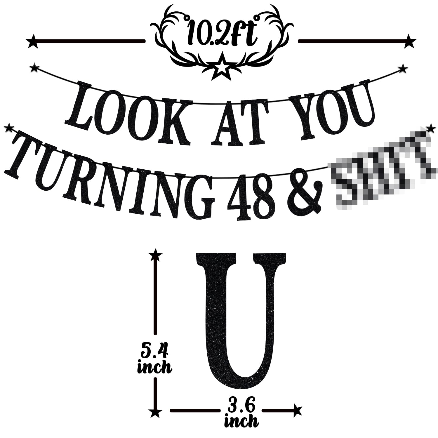 Received included: Letter cards spelling the phrase "Look at You Turning 48 & Sh*t". Awesome decorations: It is very suitable for the 48th Birthday party. Special party decorations can add an enjoyable and active atmosphere to these scenes, leaving a happy and unforgettable memory. High quality: Banners are made of glitter premium cardpaper. They are rigid and reusable. Easy to DIY: The card and the rope are separate, you only need to spend a little time to assemble. Choose us and believe us: We support the concept of customer first and product first. If the quality or damage occurs during transportation, we will solve it.