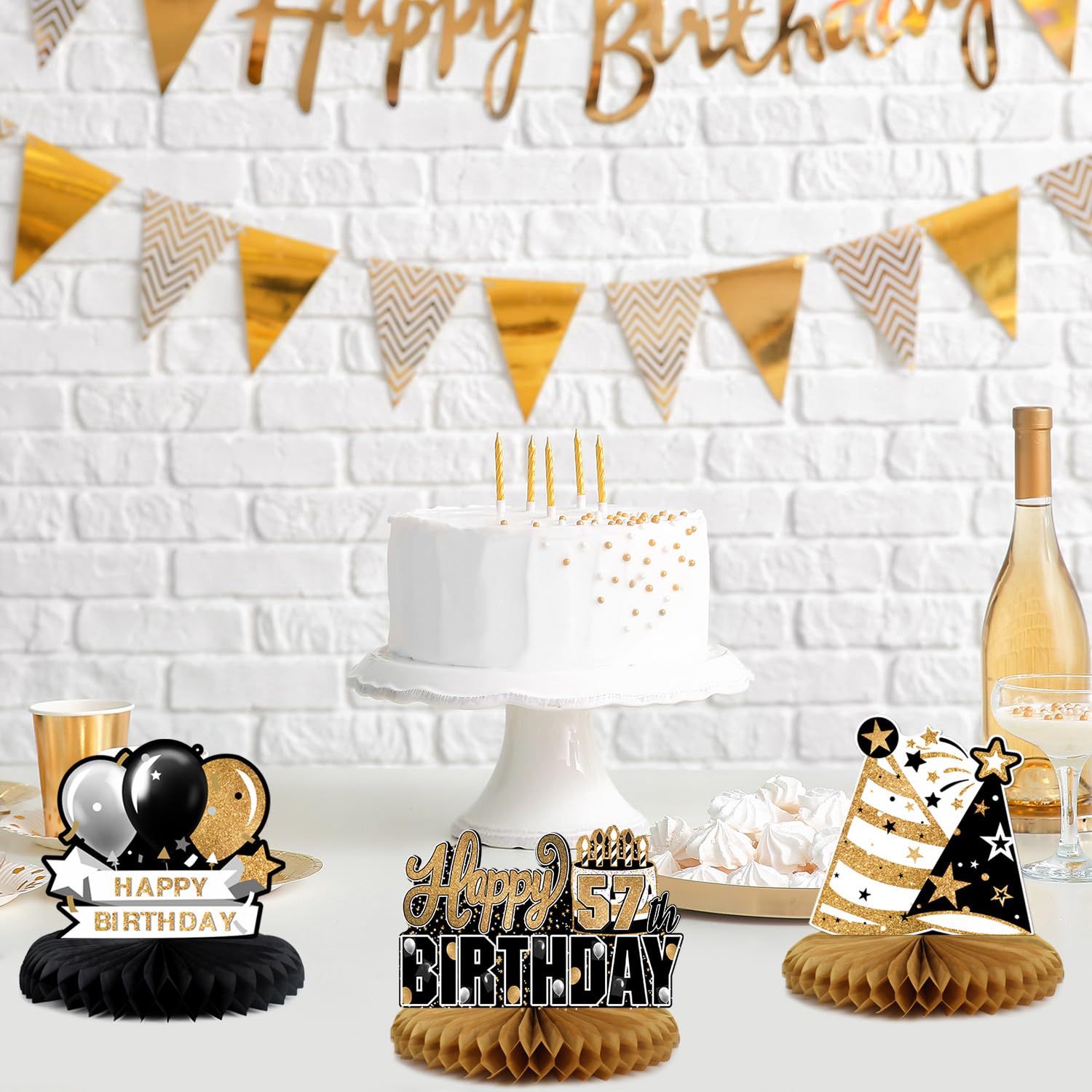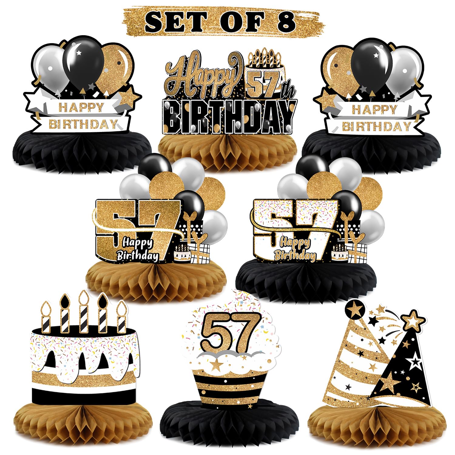 [WHAT YOU GET] Comes with 8pcs "57th Birthday" Gold cake star balloon table honeycomb ,made of thick paper and great details sign.Take pictures will very pretty !