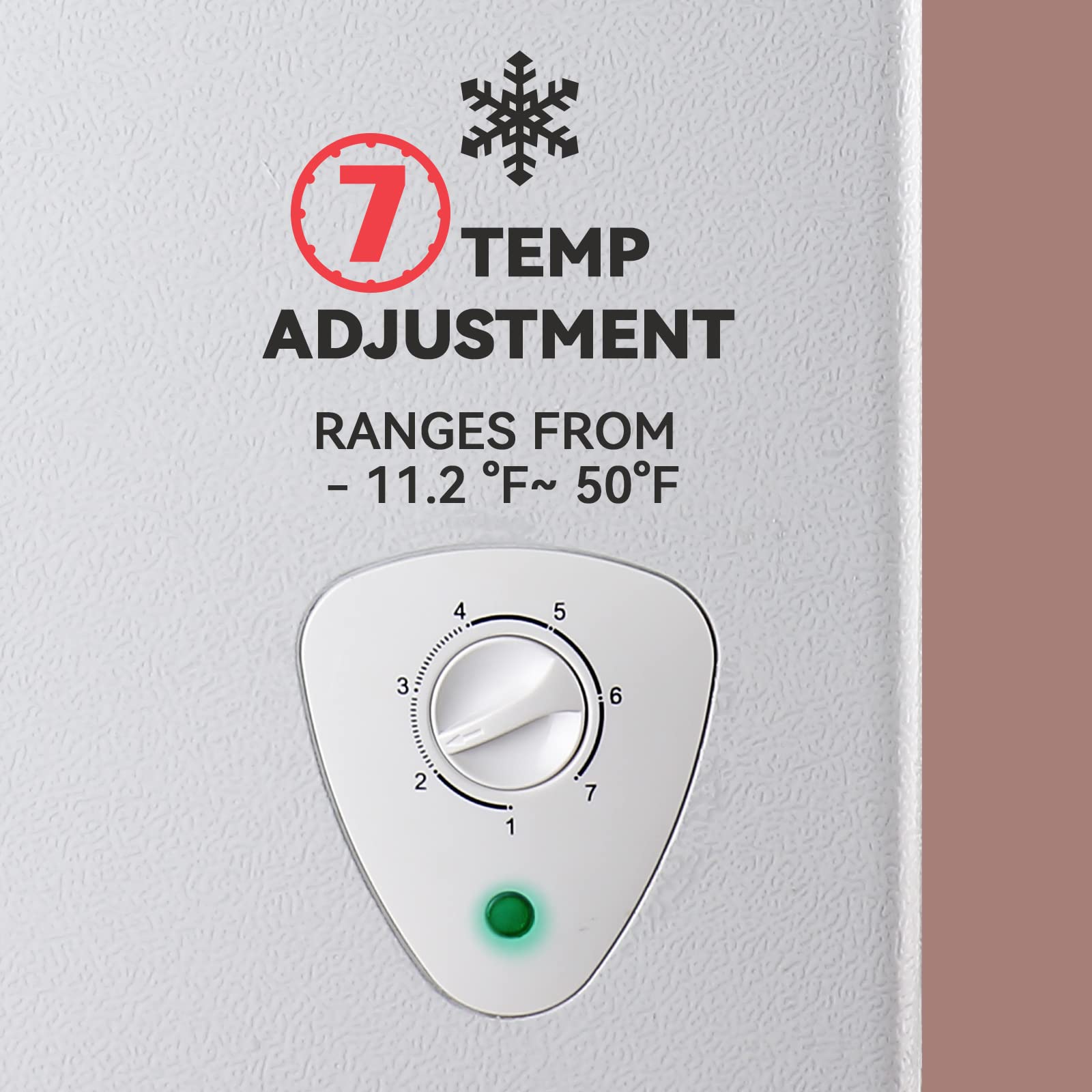 SEVEN TEMPERATURE ADJUSTMENT BUTTON: With the temperature adjustment buttons one to seven, you can adjust the temperature range from -11.2 °F to 50 °F to meet your various food storage conditions