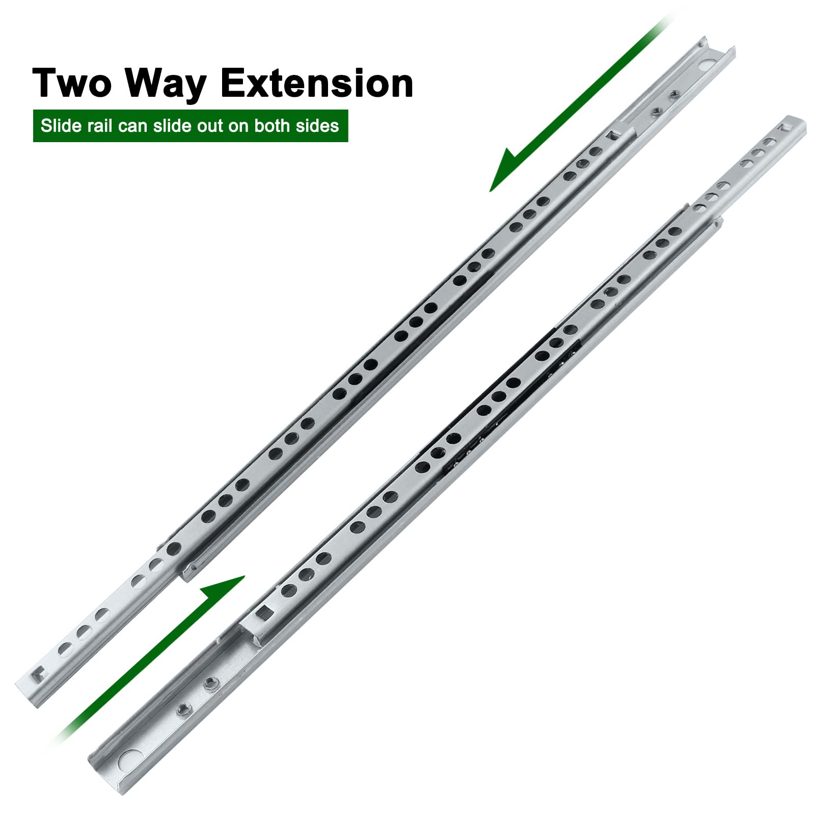 【Premium Material】 -- Drawer rails are made of high quality cold rolled steel, with zinc plated finish, preventing rust, hard and smooth.