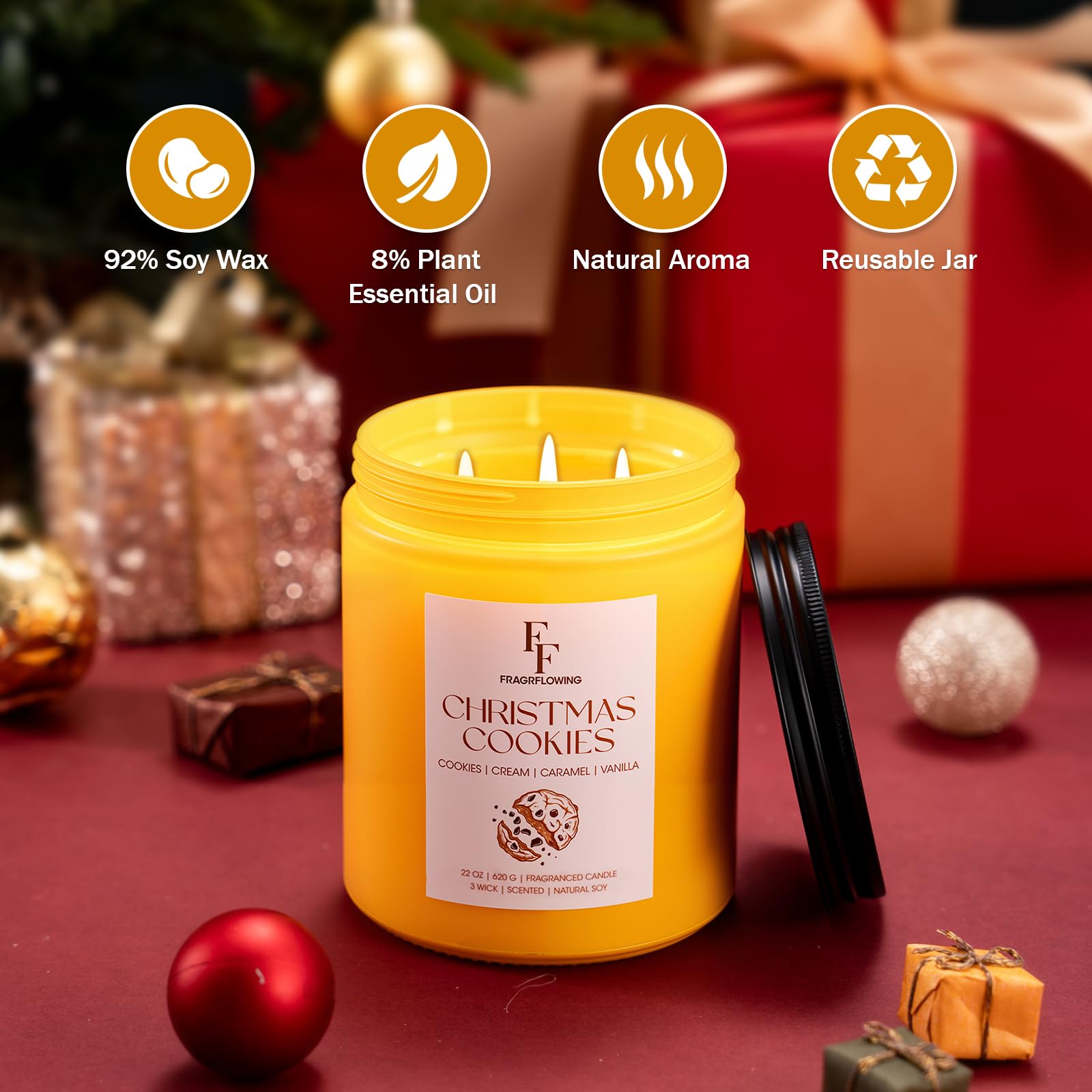 Generous 22oz Holiday Candle: Designed to fill the entire season with fragrance, this 22oz Christmas candle delivers 90-100 hours of continuous festive ambiance. Let the rich, sweet scent of Christmas cookies wrap your home in warmth and nostalgia, keeping the holiday spirit alive throughout your celebrations