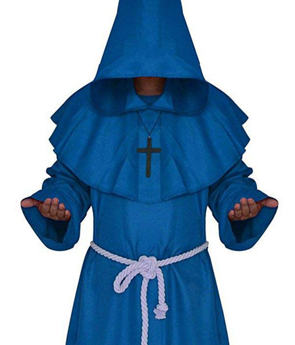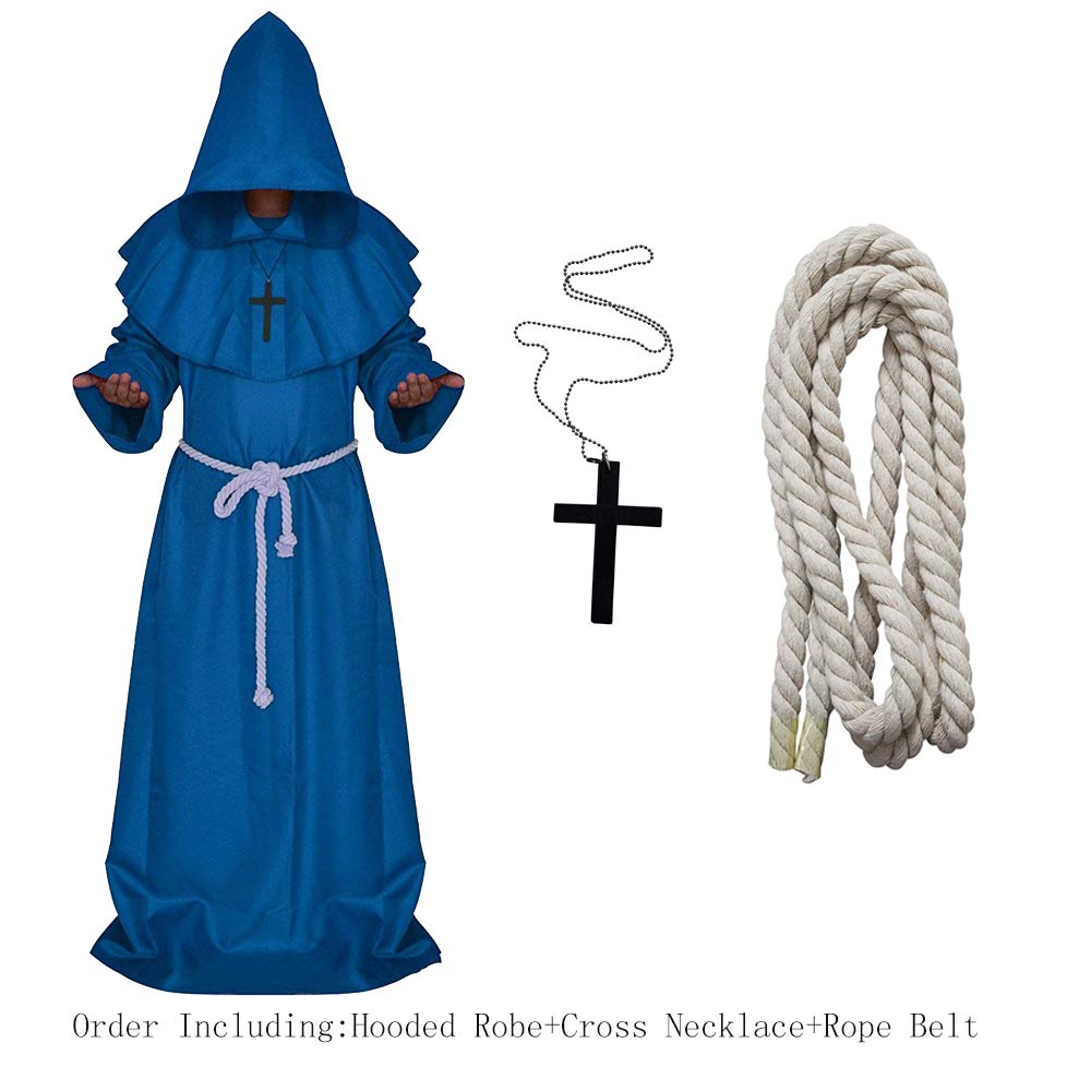 Description Friar Medieval Hooded Monk Renaissance Priest Robe Costume Cosplay Include: Hooded Robe + Rope Belt ( 67" approximately ) + Cross Necklace (Horizontal 2.75", Vertical 3.8") Please be aware this is not US size. Please check the size chart before ordering. ====== Size chart ====== S (Bust 116cm/45.7inch. Shoulder 46cm/18.1inch. Length 140cm/55.1inch. Fit For Height 160-170cm/63-66.9inch) M (Bust 120cm/47.2inch. Shoulder 47cm/18.5inch. Length 145cm/57.1inch. Fit For Height 170-175cm/66.9-68.9inch) L (Bust 124cm/48.8inch. Shoulder 48cm/18.9inch. Length 150cm/59.1inch. Fit For Height 175-179cm/68.9-70.5inch) XL (Bust 128cm/50.4inch. Shoulder 49cm/19.3inch. Length 155cm/61.1inch. Fit For Height 179-183cm/70.5-72.1inch) XXL (Bust 132cm/52.0inch. Shoulder 50cm/19.7inch. Length 160cm/63.0inch. Fit For Height 183-187cm/72.1-73.6inch)