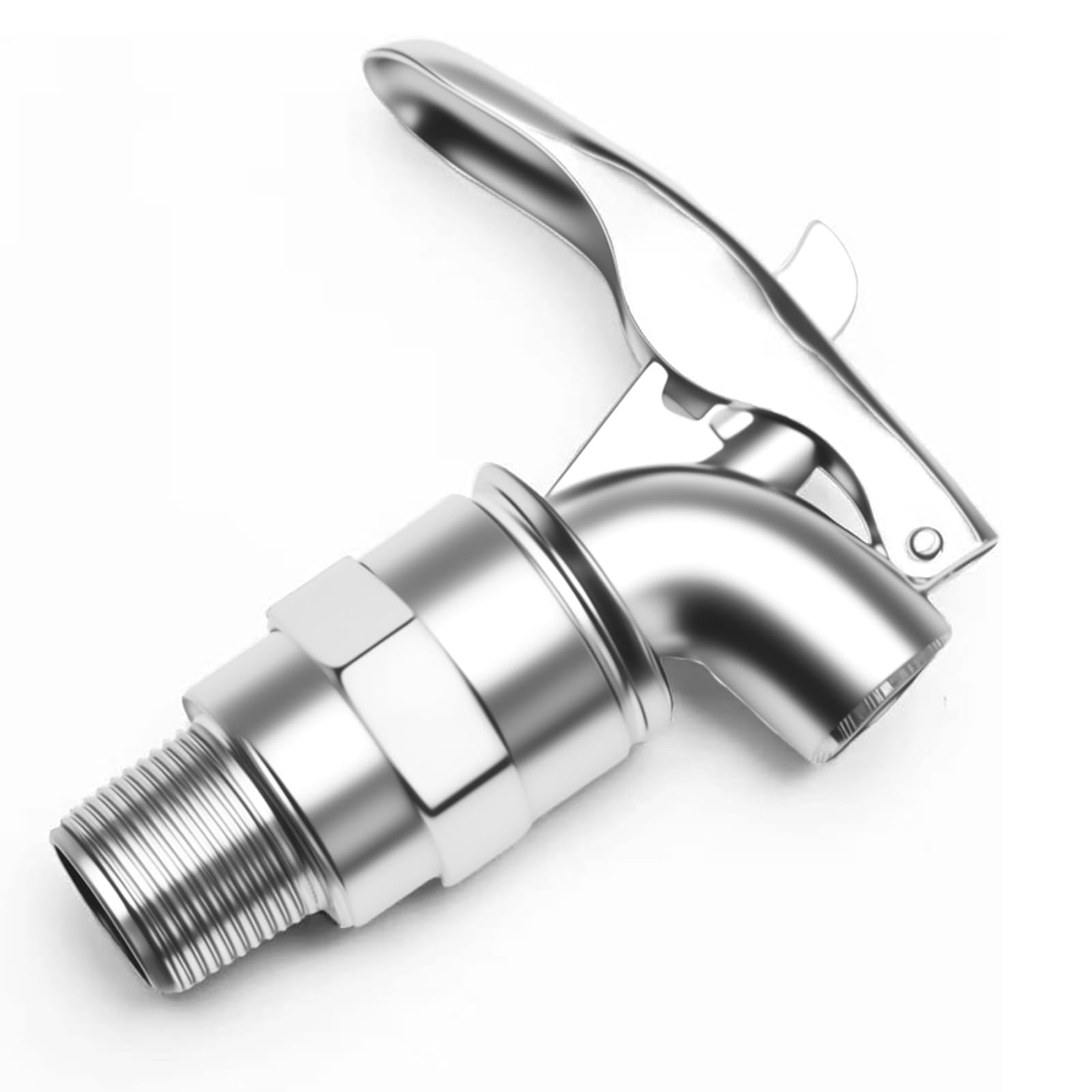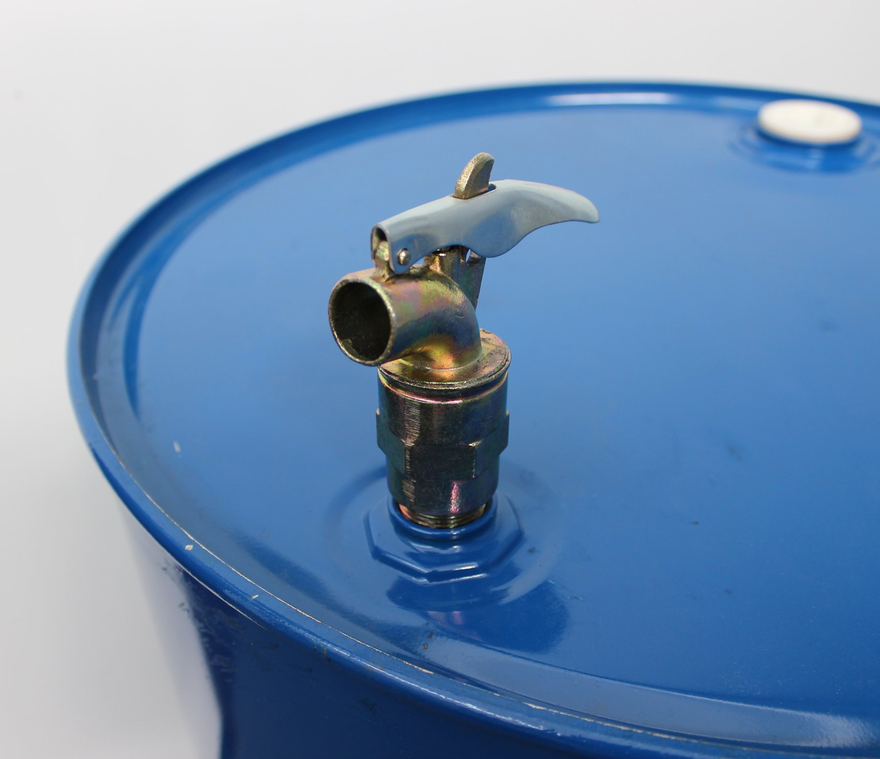 SAFE & RELIABLE DESIGN: Self-closing alloy body drum faucet with 3/4" NPT connection, designed for controlled dispensing of non-flammable liquids.