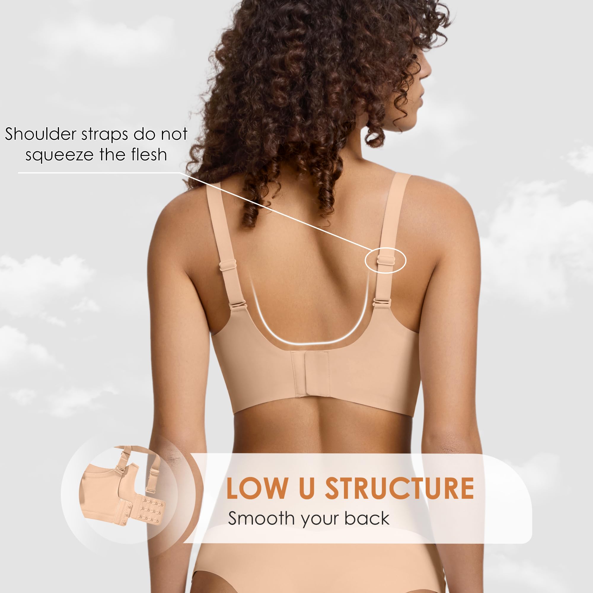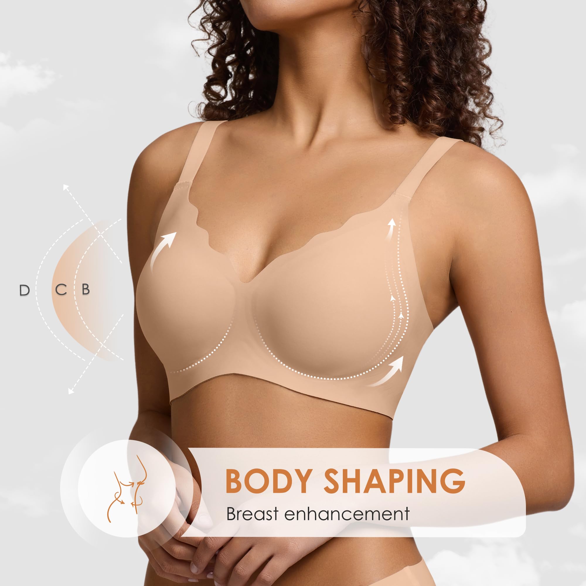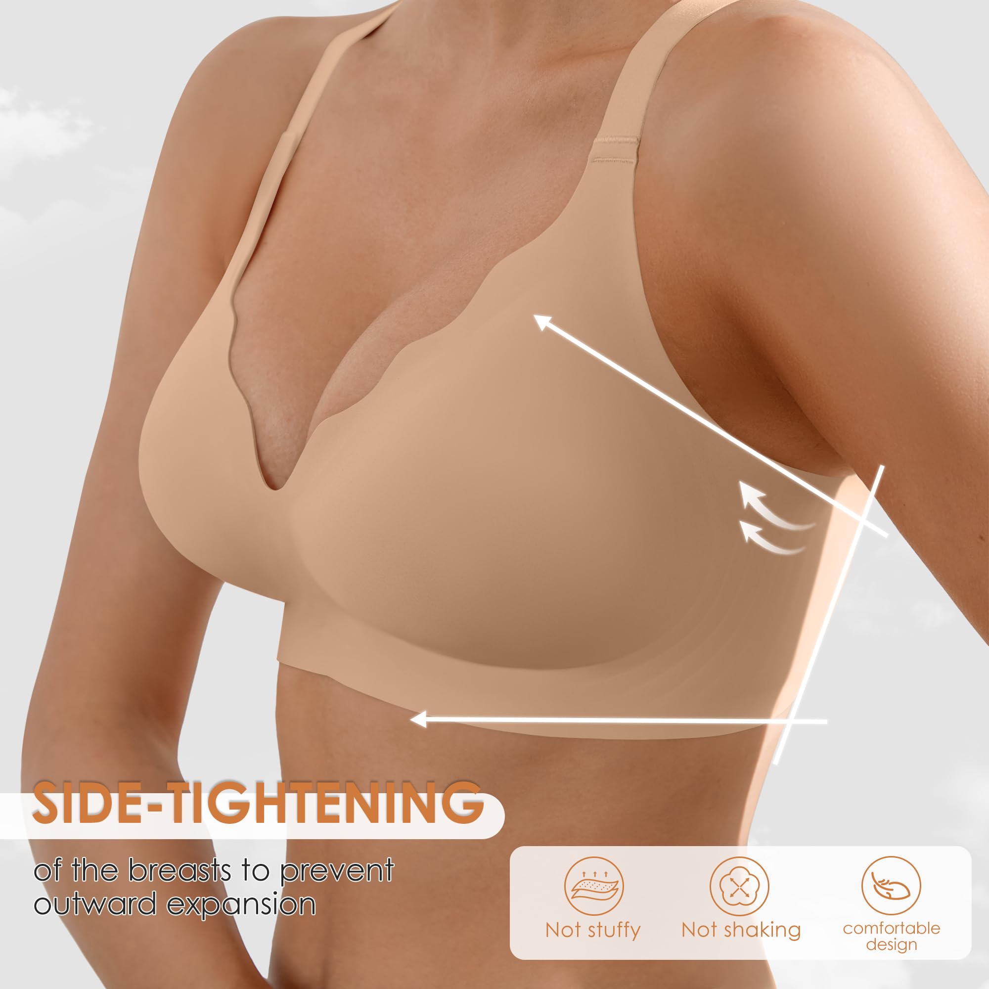 Innovative "W" jelly strip design: The unique "W" jelly strip design without underwire provides 360° full supportive and cover, gently lifting the breasts and bringing a natural and busty lifting effect to the breasts. This bra is designed to take into account both comfortable and shaping, allowing you to enjoy a cloud like soft feel all day long.