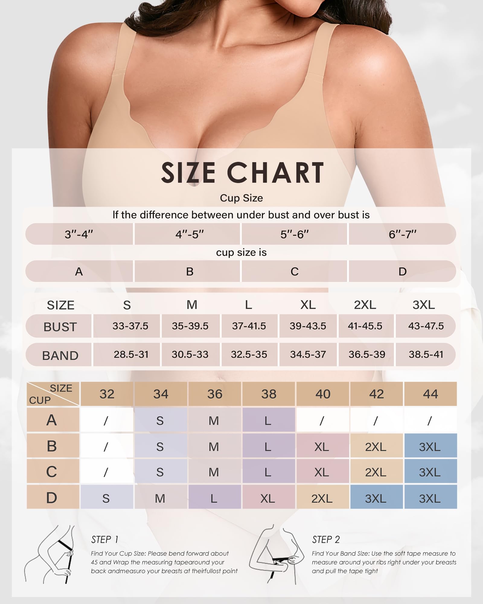 Multiple size for easy selection: Provides comprehensive size selection from small to medium and large, covering a variety of breast shapes and body needs. Suitable for different women from sizes from 32b to 40c and various plus sizes, whether young girl or mature woman, can find the right size to ensure a comfortable fit.