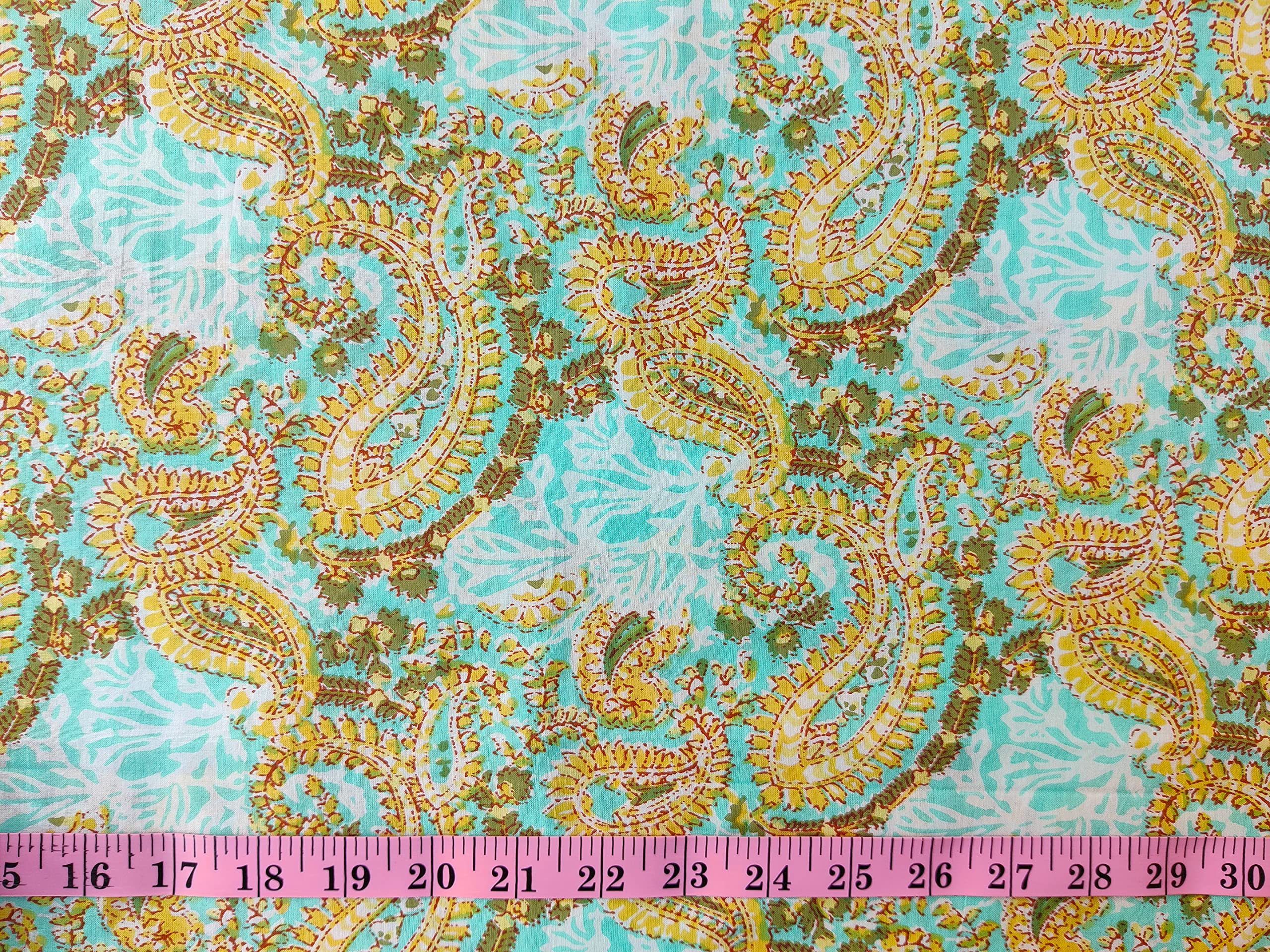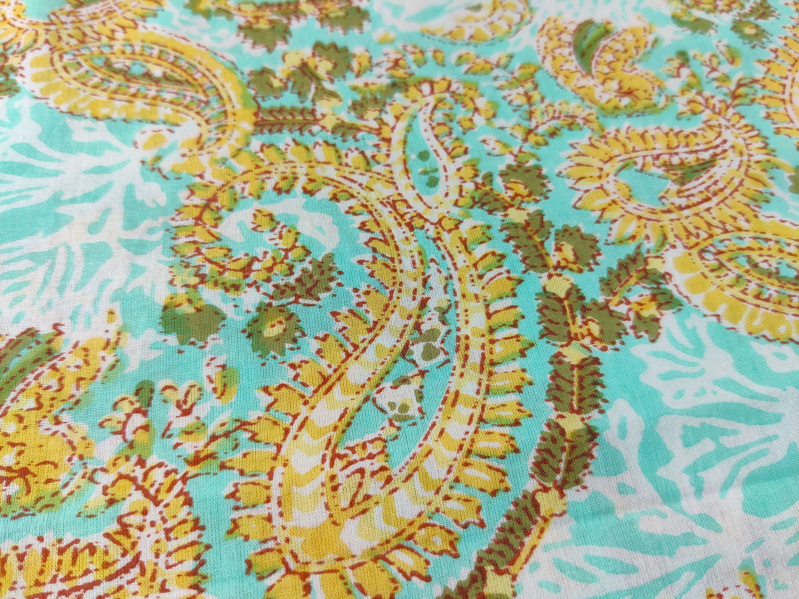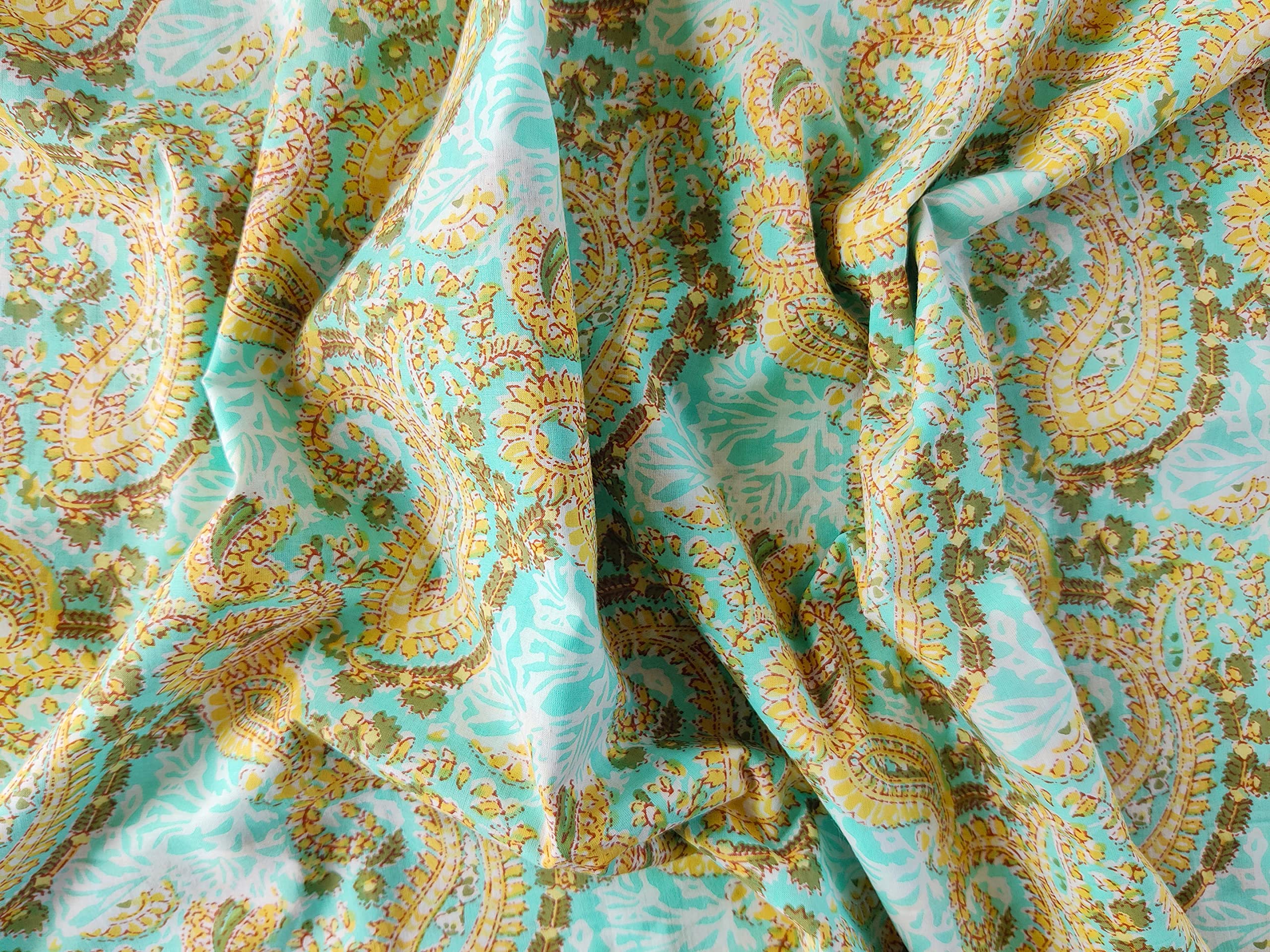 This is a precut piece of 1 yard of an Indian cotton fabric. This is a hand printed fabric using wooden blocks or screens. The width of the fabric is 42 inches. It is a pure cotton yardage and is a thin light weight cotton. Ideal for garments and light home linen. Use this unique and beautiful printed cotton for your next sewing project. If you order 2 quantity, you will receive 2 pieces of cut fabrics of 1 yards each. You will not receive a continuous yardage.
