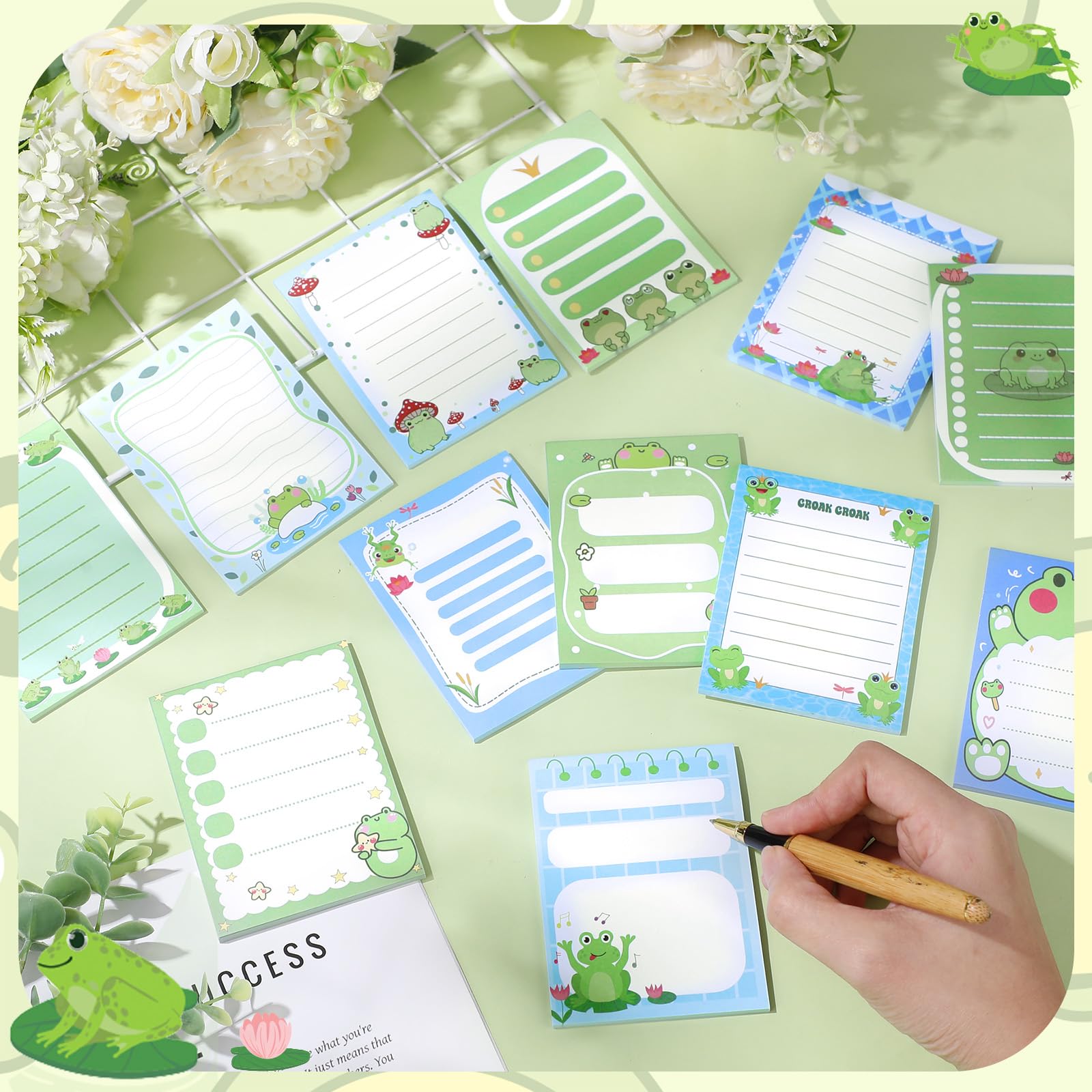 Frog Design: the cute sticky notes feature a fun and adorable cartoon frog design in bright, vibrant colors, adding a lighthearted touch to any note, reminder, or office supplies