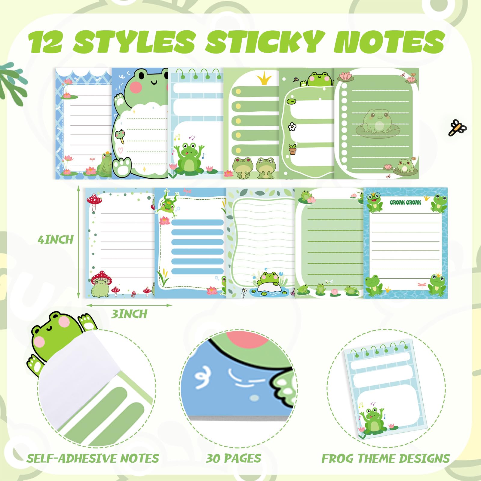 Frog Sticky Notes Set: you will receive 12 pieces of frog themed sticky notes, packaged with 30 pages each, for a total of 360 sheets; The dimensions are a handy 3x4 inches /7.6x10 cm, enough quantity and rich design to meet your various needs and replacements