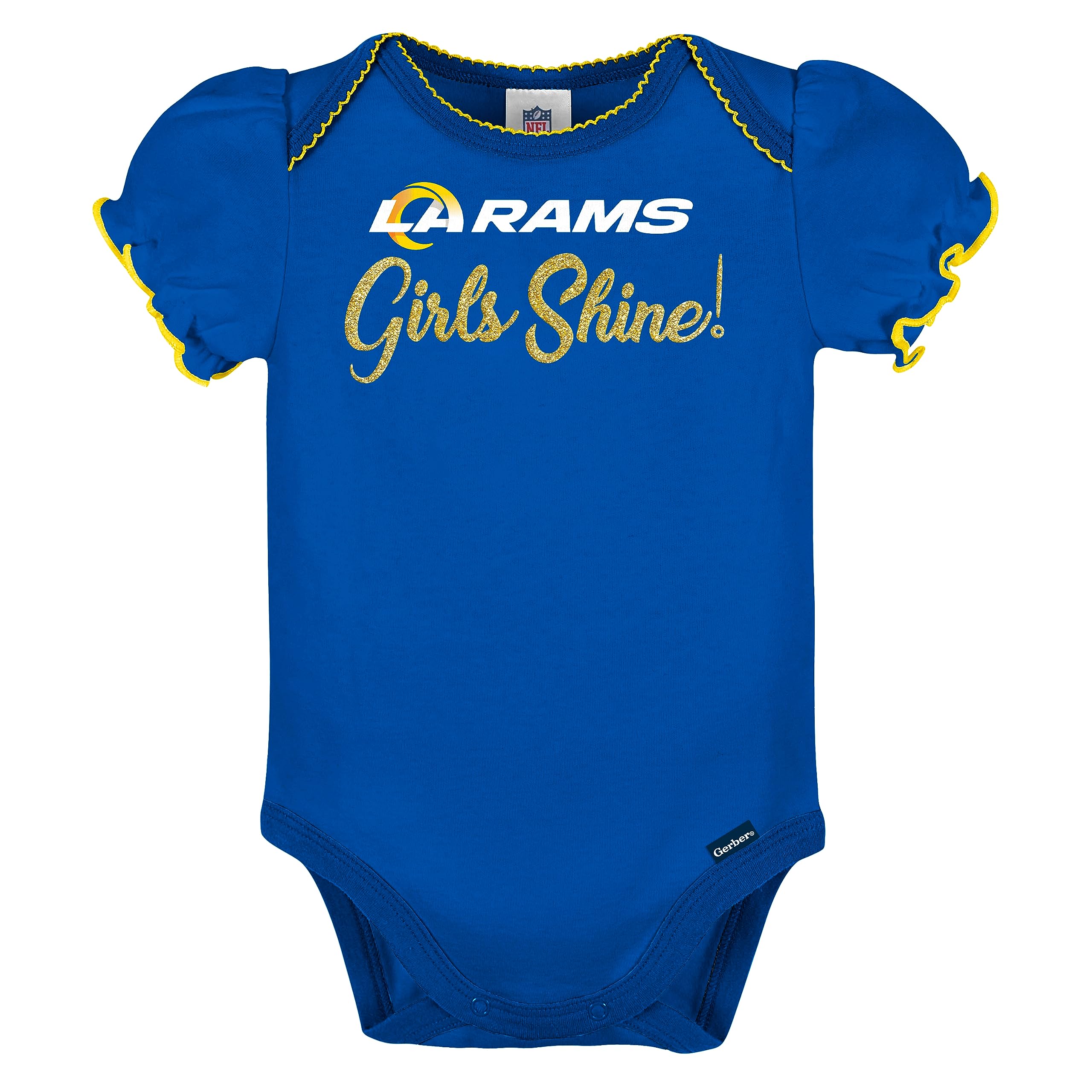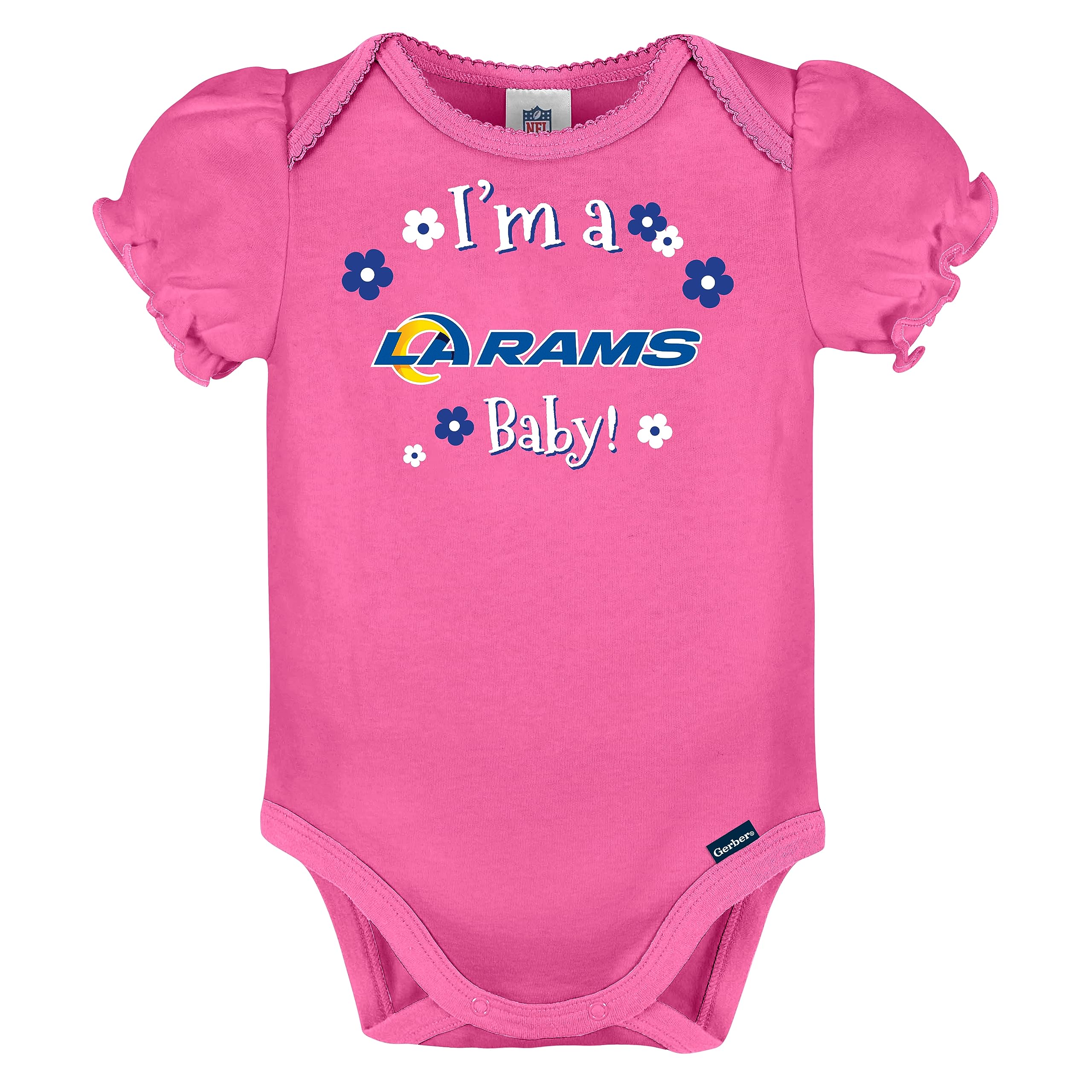 Description It’s time for the whole family to cheer on the team! These officially licensed NFL bodysuits are the gear your little one needs for game day. Your baby will stay comfy throughout the entire game (and day!) in the cotton/poly interlock of these NFL baby bodysuits. The bodysuits feature expandable lap shoulder necklines to keep changes comfortable and quick. The bodysuits feature a variety of designs and patterns that show off baby’s team pride. The bottom snaps are positioned for convenient diaper changes, so taking breaks from the game don’t last longer than they need to. These baby girls’ bodysuits are a great choice for warm or cool game days, as they may be layered over or worn all on their own. These bodysuits are machine washable for your convenience. Show your team spirit by dressing the whole family for the upcoming season!