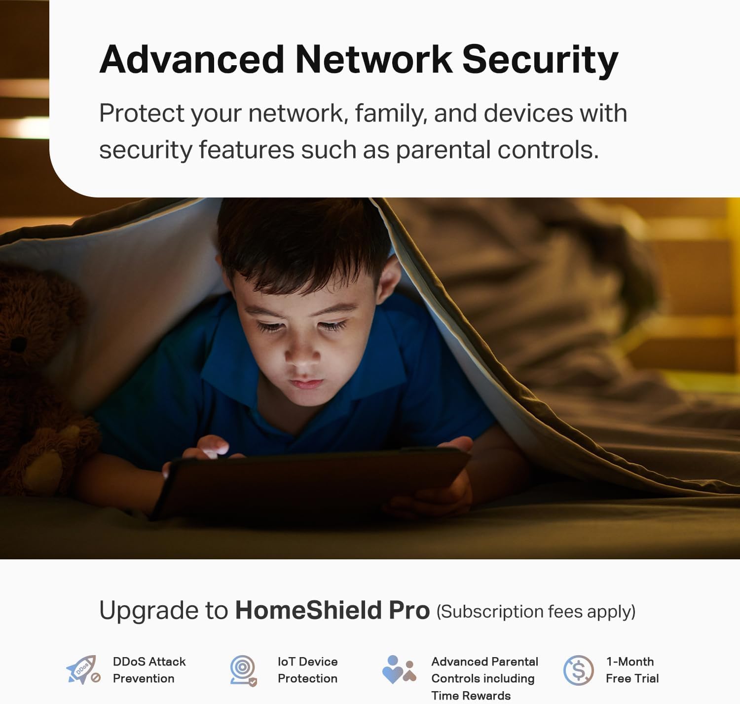 ๐“๐-๐‹๐ข๐ง๐ค ๐‡๐จ๐ฆ๐ž๐’๐ก๐ข๐ž๐ฅ๐: TP-Link's premium security service keeps your home network safe with cutting-edge network and IoT protection. Free features: 1. Basic Network Security including Security Scan and IoT Device Identification 2. Basic Parental Controls 3. Quality of Service 4. Basic Weekly/Monthly Reports. Visit TP-Link website for more information.