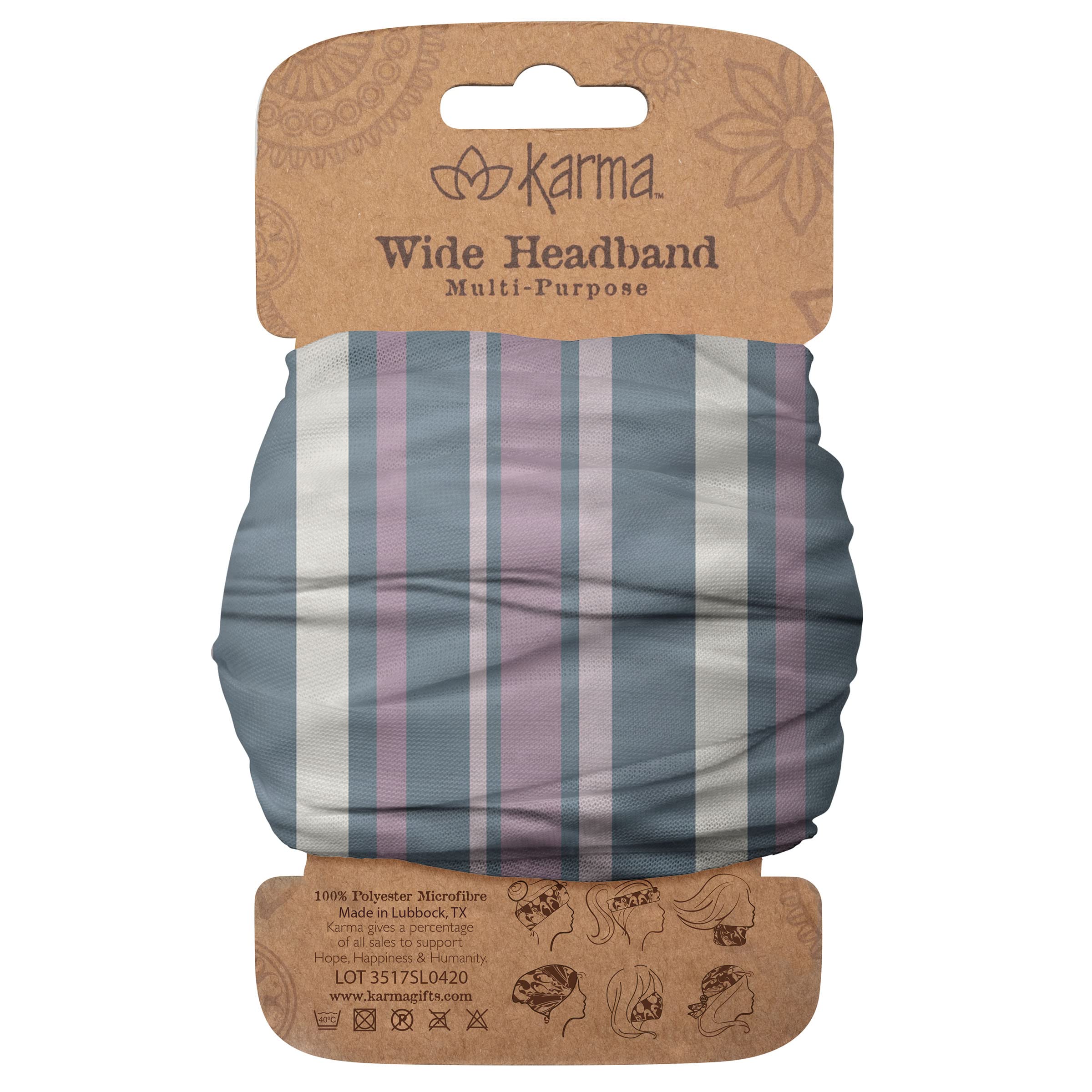 Display your distinctive style and keep your hair in place with our Wide Headband for Women. Find your perfect match with multiple colors, designs, and patterns explicitly created for Karma by hand-picked artists. They stay in place and won't slip off your head while wearing them to the beach, gym, hiking, or shopping. This versatile hair bandana can be worn in multiple ways, wrap it around your wrist as a bracelet, and use it as a ponytail holder, scarf, or face cover. Our cloth headbands fit most sizes, are made from 100% polyester microfiber, and can be machine washed and dried quickly. We believe the value is in the details, and that's why we take pride in the finer points of each item we produce. Our collections of home décor, gifts, clothing, and more are designed to bring joy and unique style to each day.