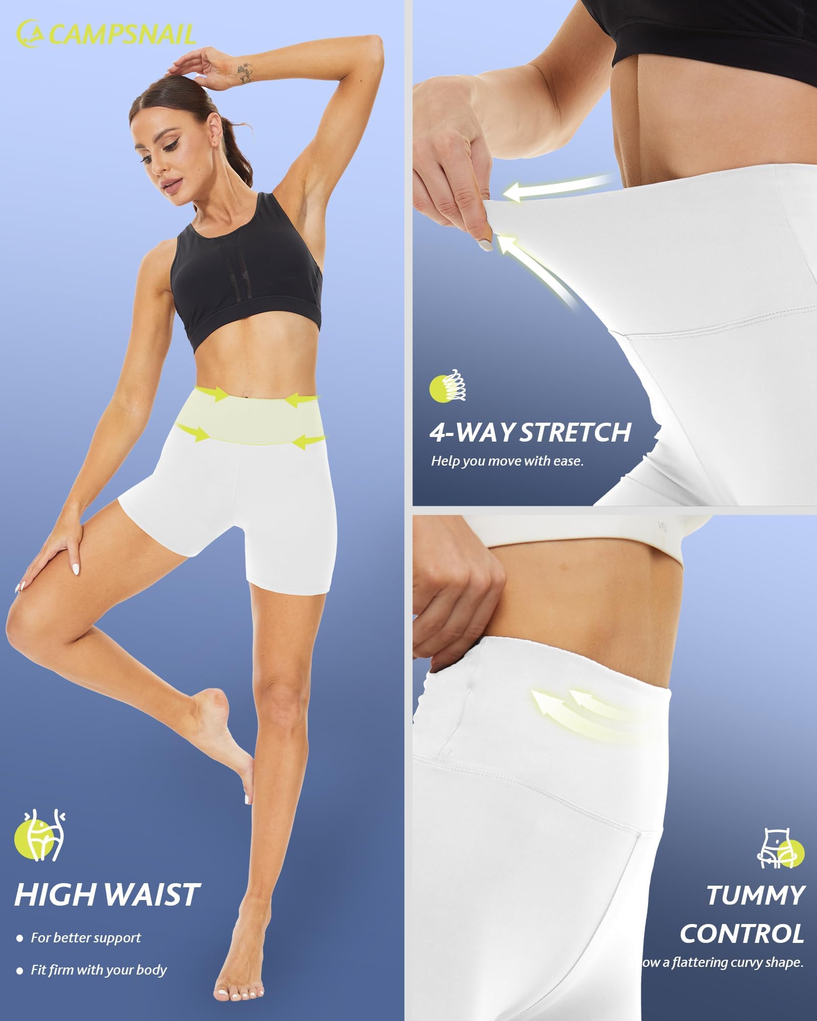 High Waisted Gym Shorts: The spandex shorts feature a 3.1" width waistband for good coverage and tummy control, fit firm with your body and not slip down, contours your body to a flattering curvy shape and showing your charm