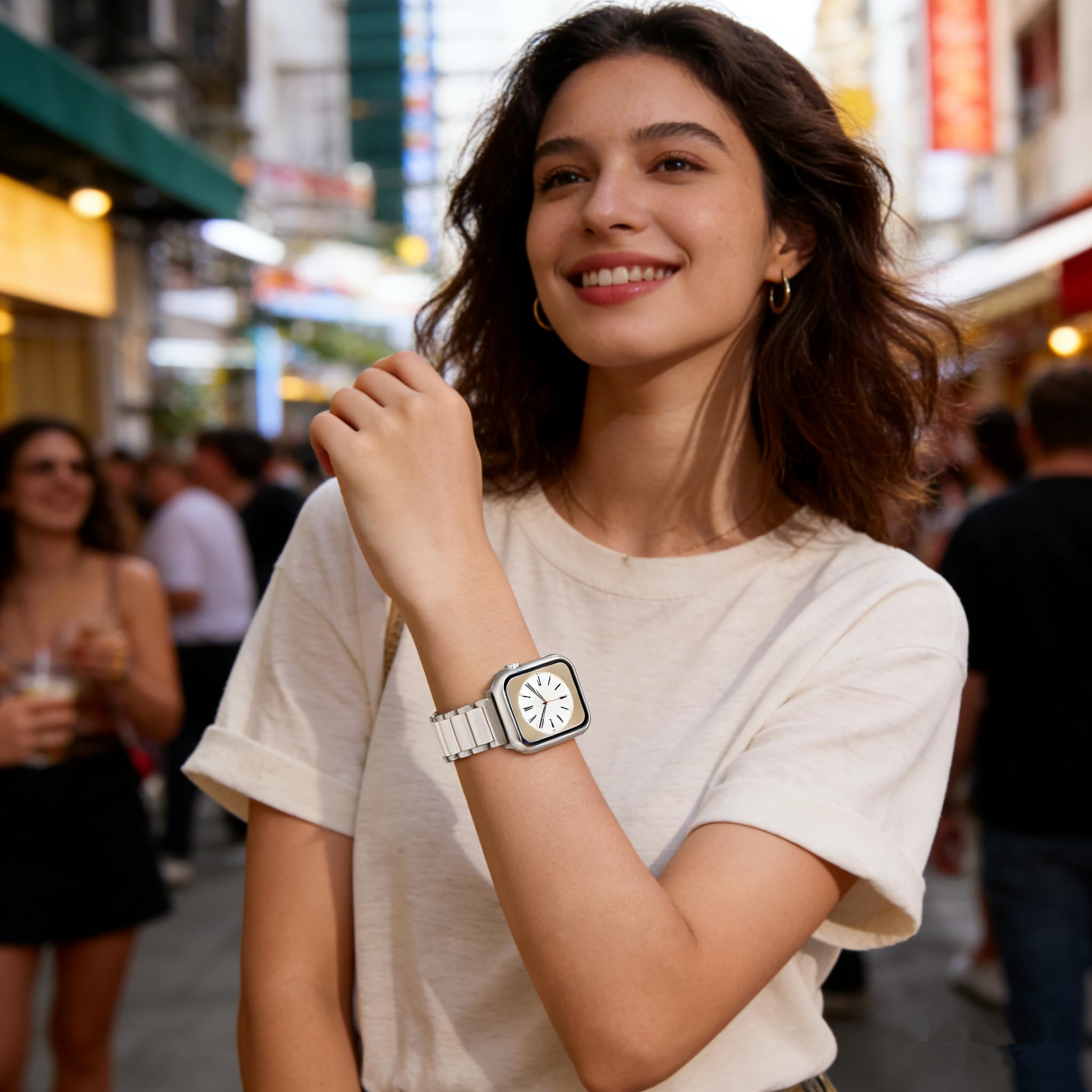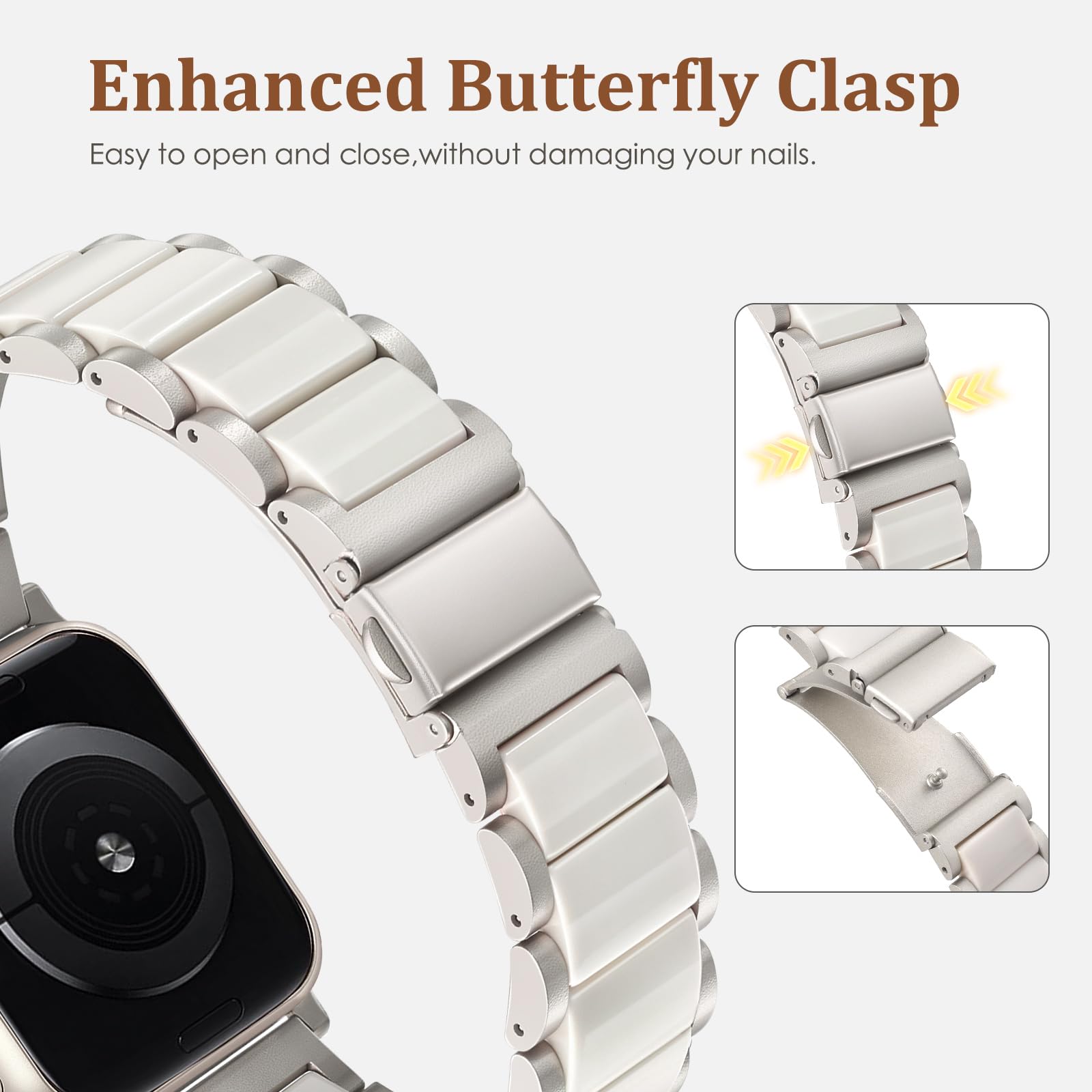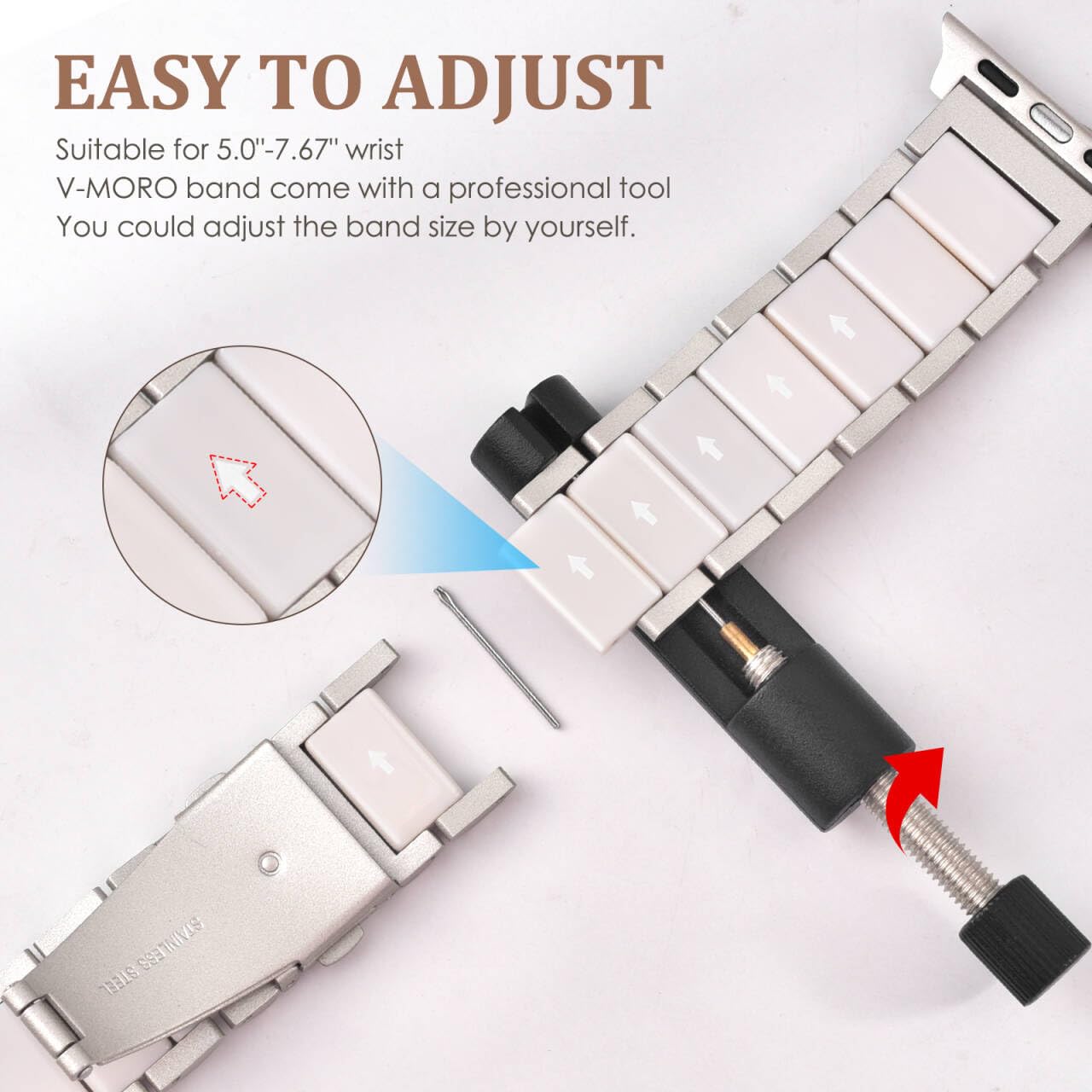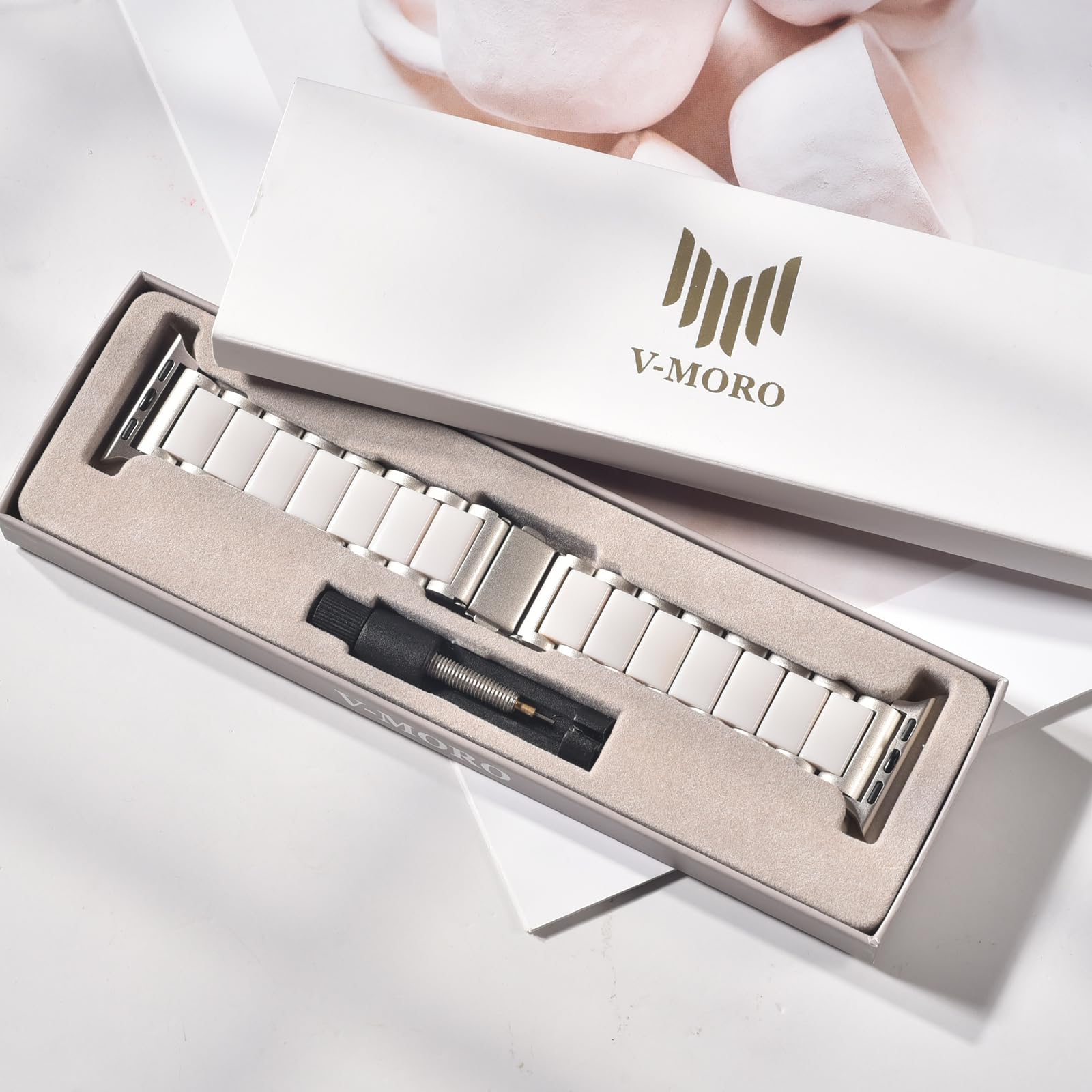 🎅Stylish & Elegant Design -Make a striking yet sophisticated statement with this exquisite fusion of premium stainless steel and luminous resin. The V-MORO 45mm Apple Watch Band combines robust durability with refined elegance, featuring a seamless integration of polished metal and high-gloss resin that catches the light beautifully.