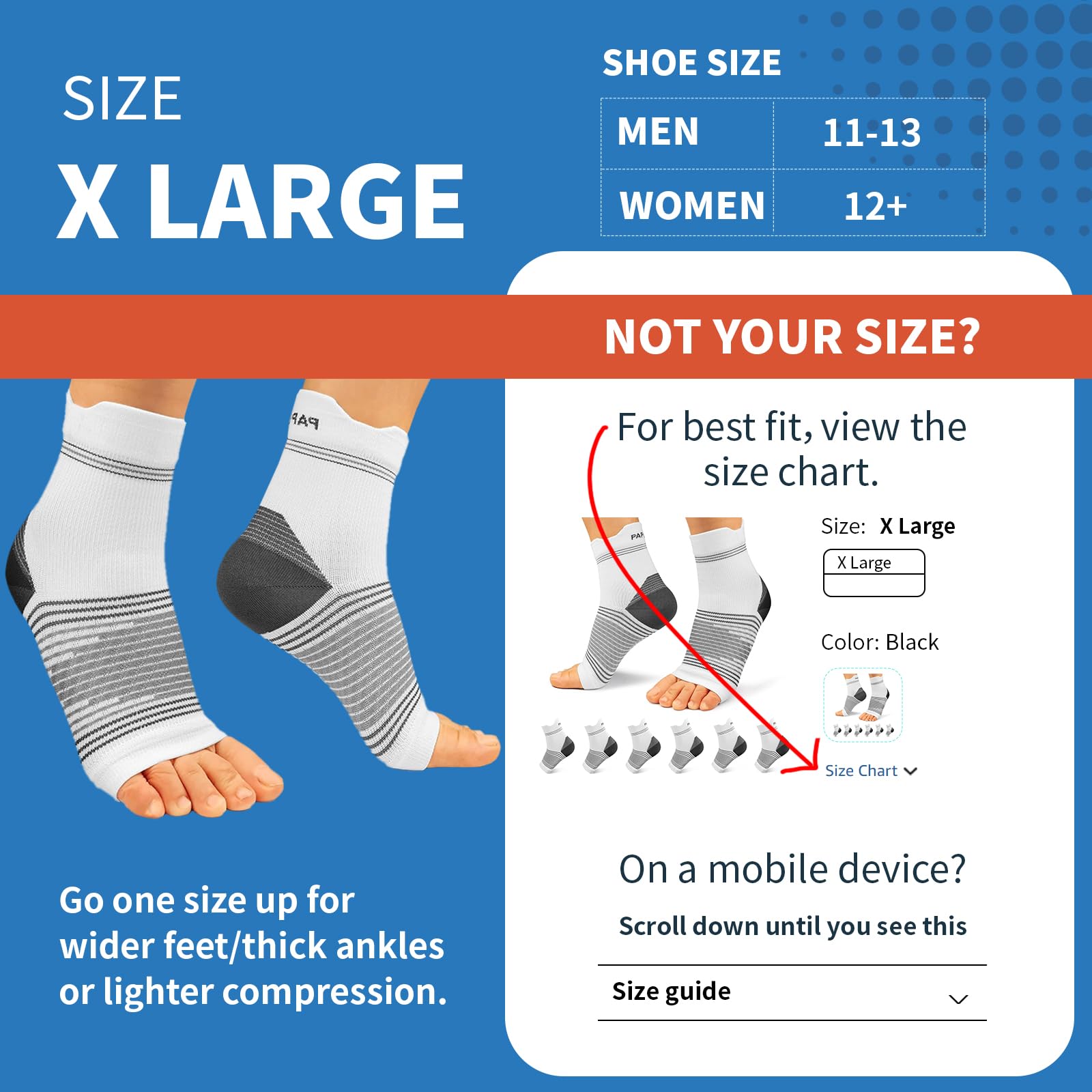 OUR SERVICES: Keeps improving and providing the best customer service is our goal. Any questions. You can contact us by email, we will give you solutions within 24 hours. FRIENDLY REMINDER: We provide 5 different sizes to ensure you receive the focused support that you need. S: US Men Size 3-4.5, Women Size 4-5.5, M: US Men Size 5-7.5, Women Size 6-8, L: US Men Size 8-10.5, Women Size 8.5-11.5, XL: US Men Size 11-13, Women Size 12+, XXL: US Men Size 13.5-15+