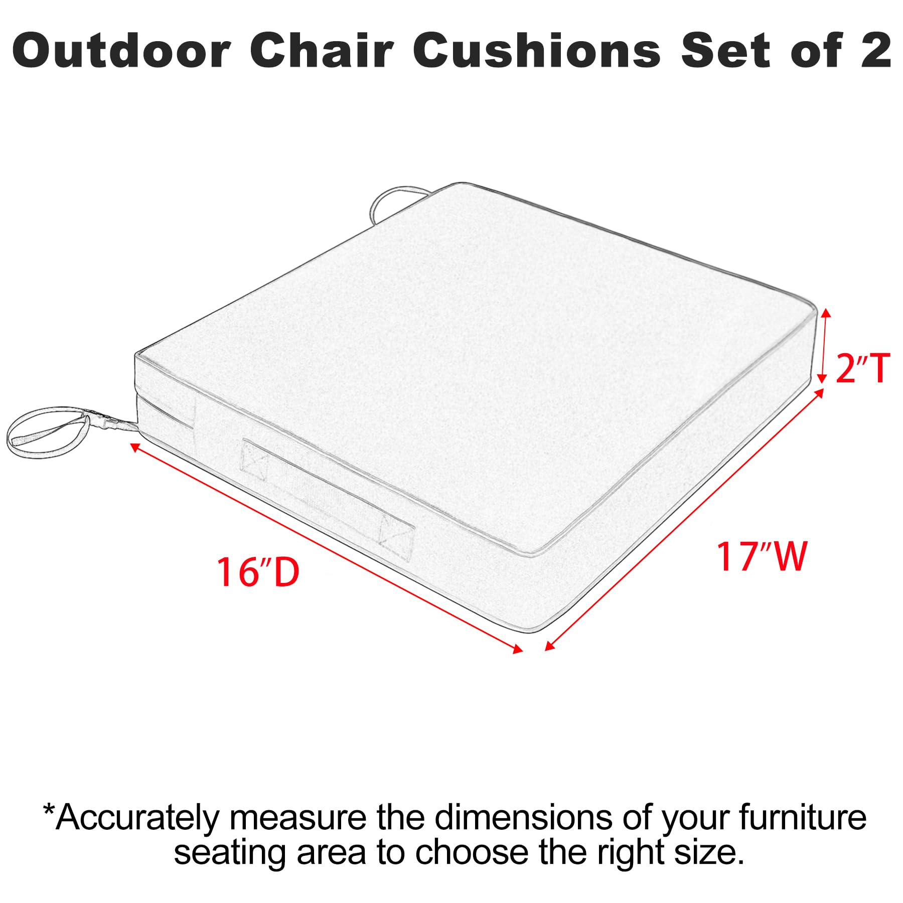 Size Selection - Including 2 outdoor chair cushions measuring 17” W x 16” D x 2” T ( The size description is only for the cushion size, accurately measuring the dimensions of your furniture's seating area before purchasing, make sure the cushion size fits your furniture ).