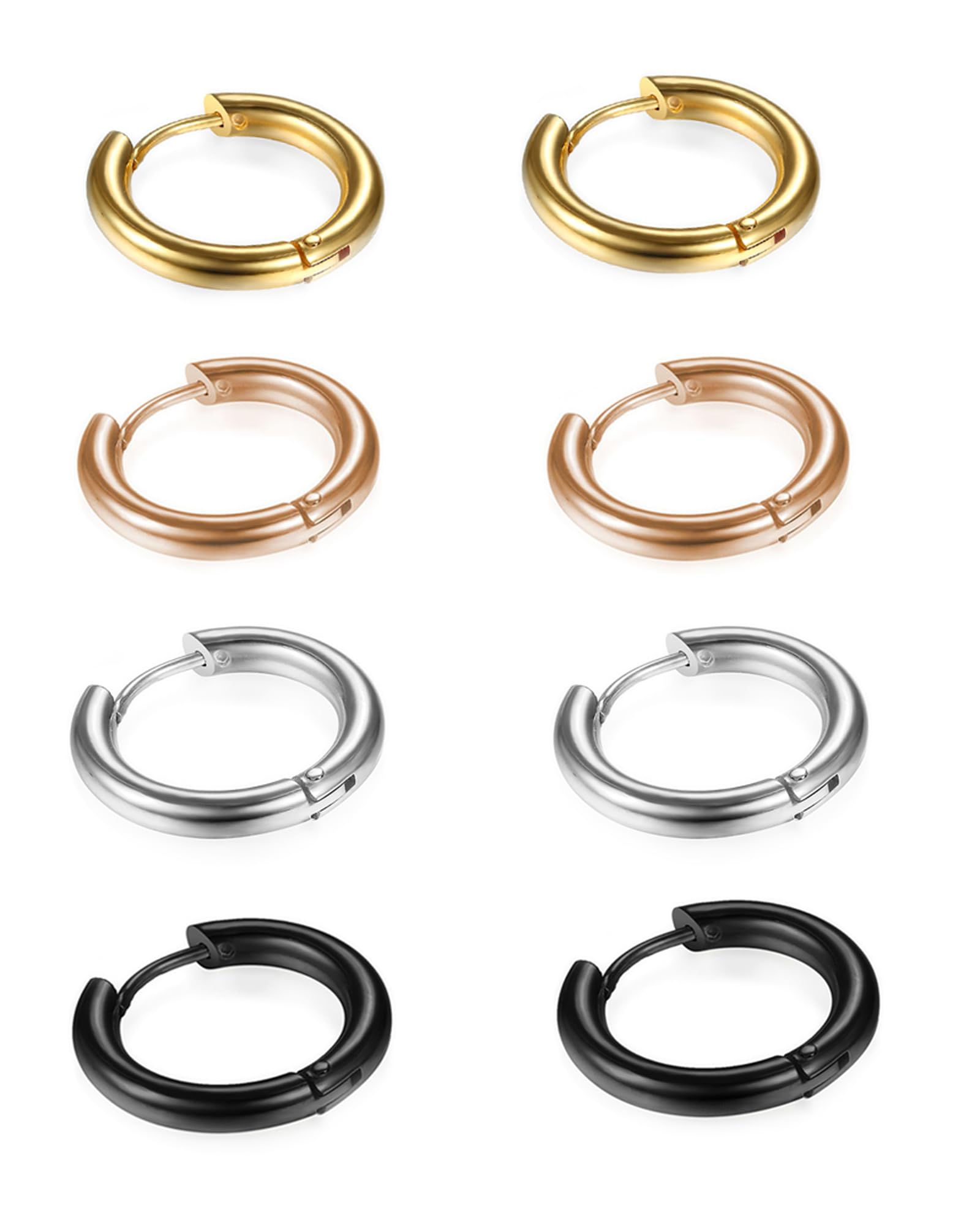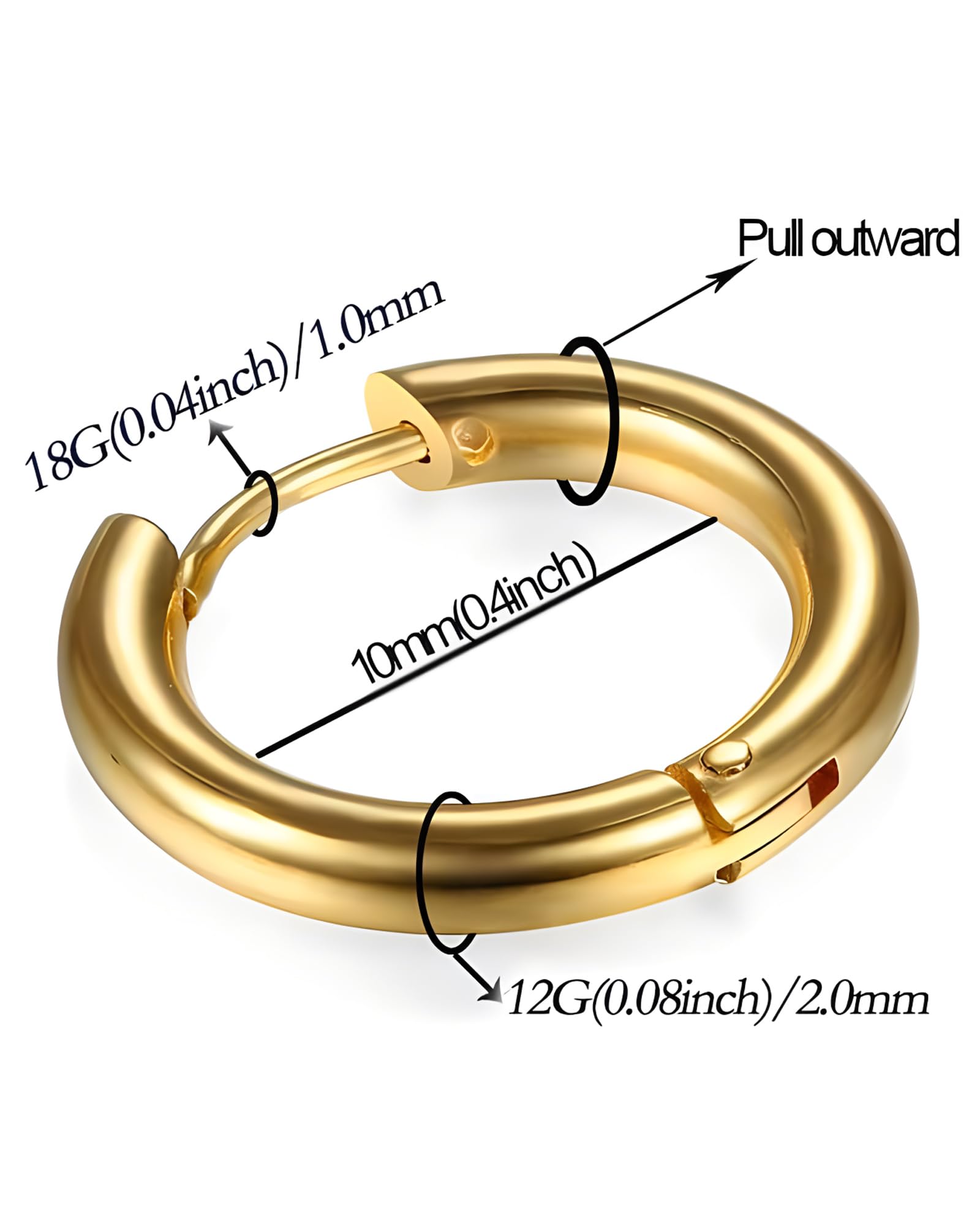 【Hoop Earrings Men Women in Multiple Sizes】Men Earrings Inner Diameter:10mm(3/8 inch).Tubes Thickness Gague:12G(2mm),Post Gague:20G(0.8mm).Multiple Sizes to Meet the Needs of Multiple Piercings,Perfectly Match Your Various Wearing Style