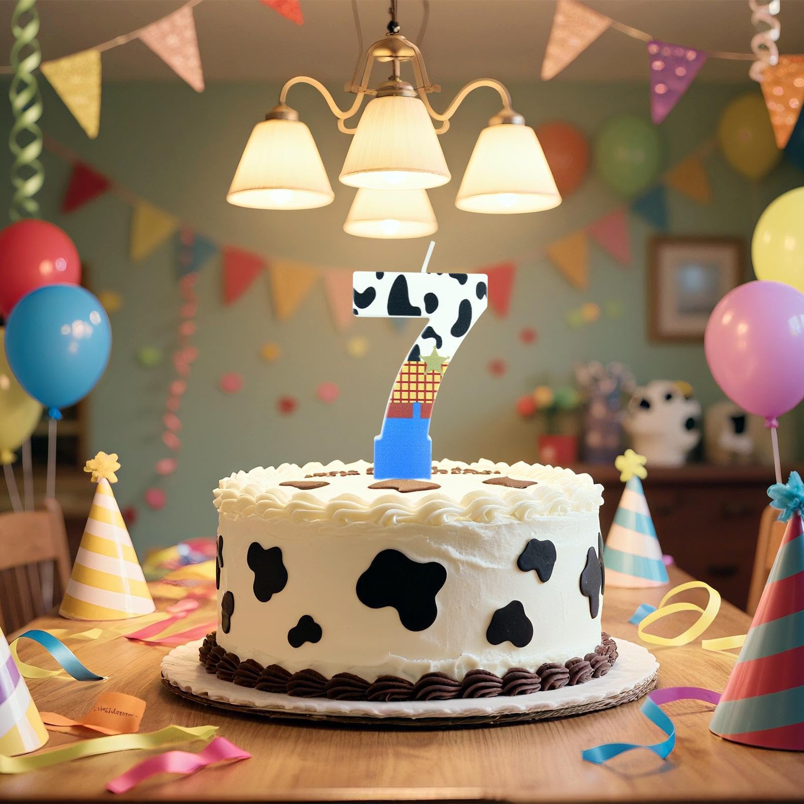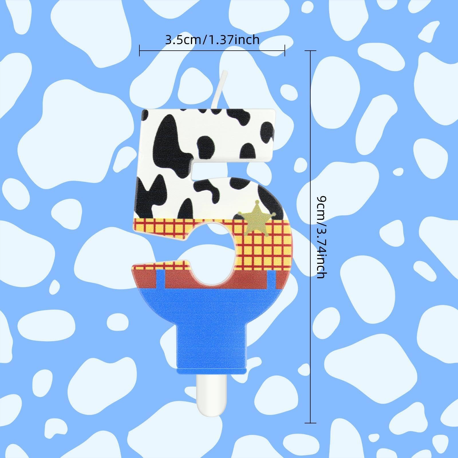 iNINGER Birthday Number 1 Candles,Toy Theme Birthday Cake Toppe,Cartoon Number 1 Candles,Cowboy Birthday Cake Decoration,Cowgirl Rodeo Birthday Party,Baby Shower for Boy Girl Birthday Supplies Good quality materials: The Toy themed candle happy birthday cake candles are mainly made of paraffin wax,safe and tasteless,long burning time,can keep the birthday party warm and bright,easy to use,good experience,meet the decoration of birthday cake,add a lot of good atmosphere. Widely used: Ideal Toy themed candle cake decoration for many occasions,such as girls birthdays,pet birthdays,baby showers,anniversaries,retirement parties,family reunions, weddings,must-have items for party cake,bring you memorable and meaningful Toy party. Specifications: Material: paraffin wax Color: as shown Candle length: approx. 6 cm/ 2.4 inch Total length: approx. 10 cm/ 4 inch Color:as pictures shown Package includes: 1 × Toy number 1 candles Notes: Manual measurement,please allow a slight error in size. There may be a slight color difference due to the difference in screen display. And please do not light candles on or near flammable materials. Please keep the candle away from the fire when not in use,when burning,adult's supervision is needed.