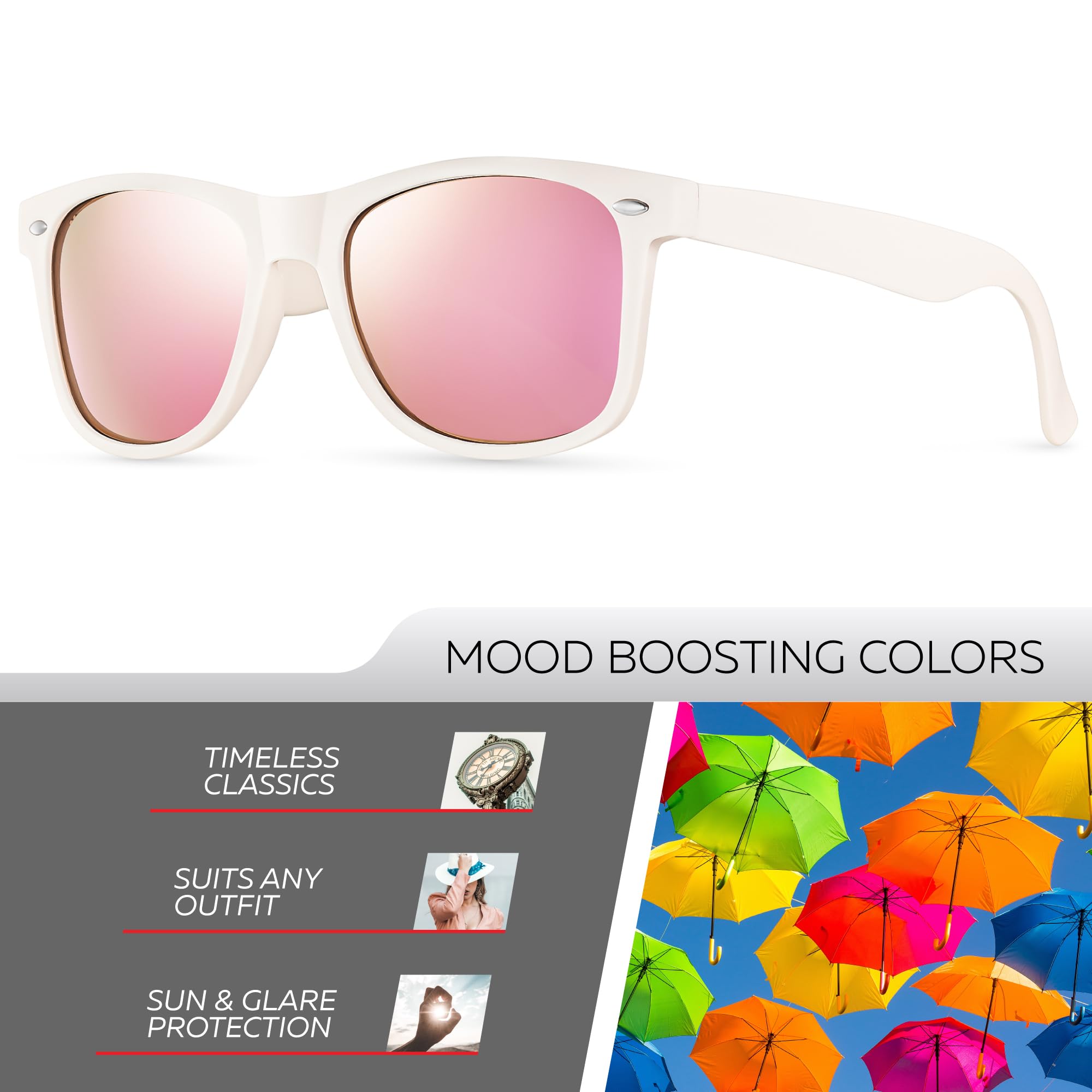 🕶️ PREMIUM FRAMES WILL MAKE A STATEMENT: The Retro Rewind lightweight sunglass frames are made of shatterproof Polycarbonate with a smooth rubberized finish for extra style points. Rather than being painted, Retro Rewind utilizes a color injection technology, preventing color deterioration and giving your sunglasses an edge.