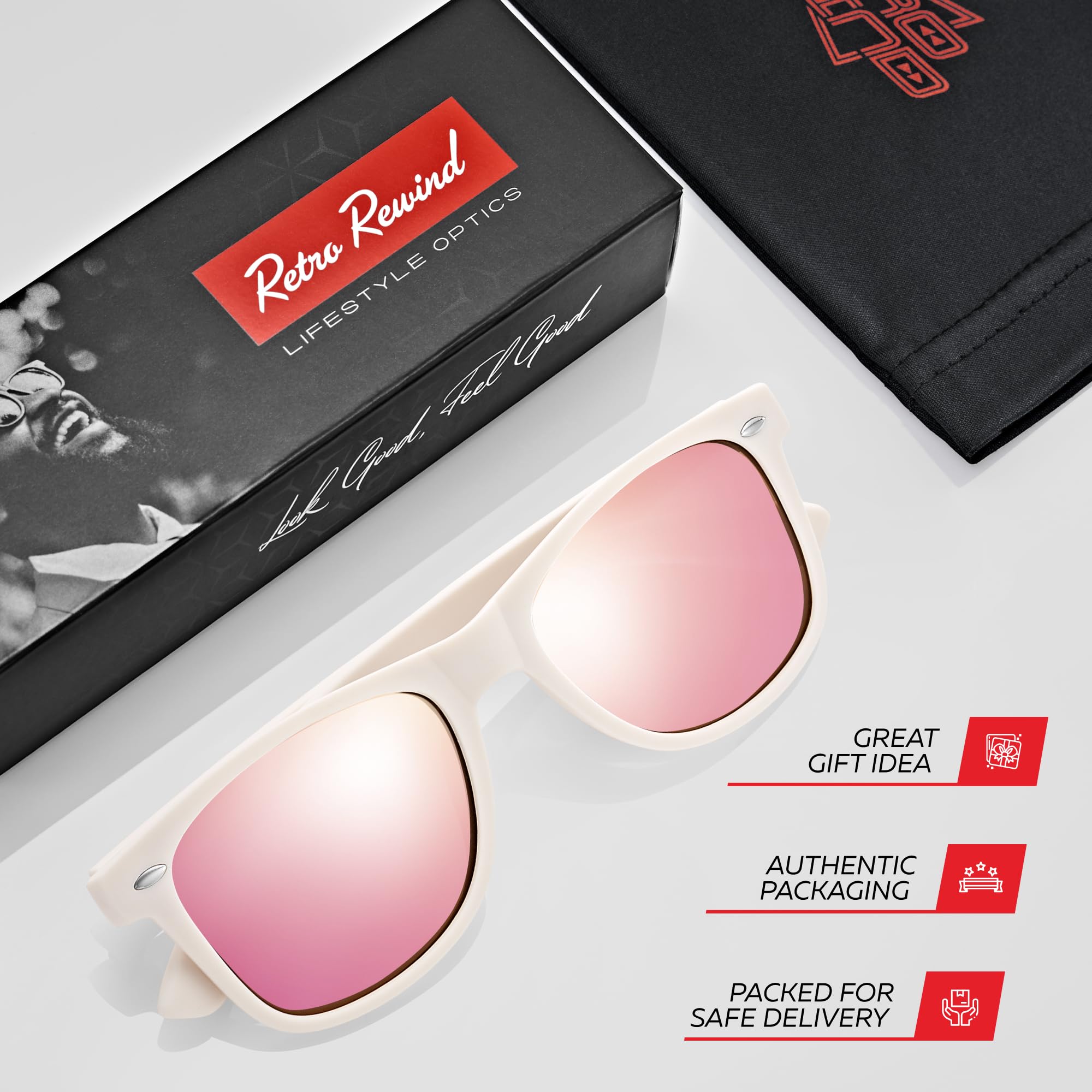 🕶️ SURPRISE YOUR LOVED ONES WITH A PAIR OF RETRO GLASSES: Every pair of Retro Rewind classic polarized sunglasses comes with an authentic Retro Rewind microfiber pouch and a Classy Gift Box. Spoil yourself, your wife or girlfriend, husband or boyfriend, family or friends with a pair of high-quality vintage sunglasses, which will not cost a small fortune.