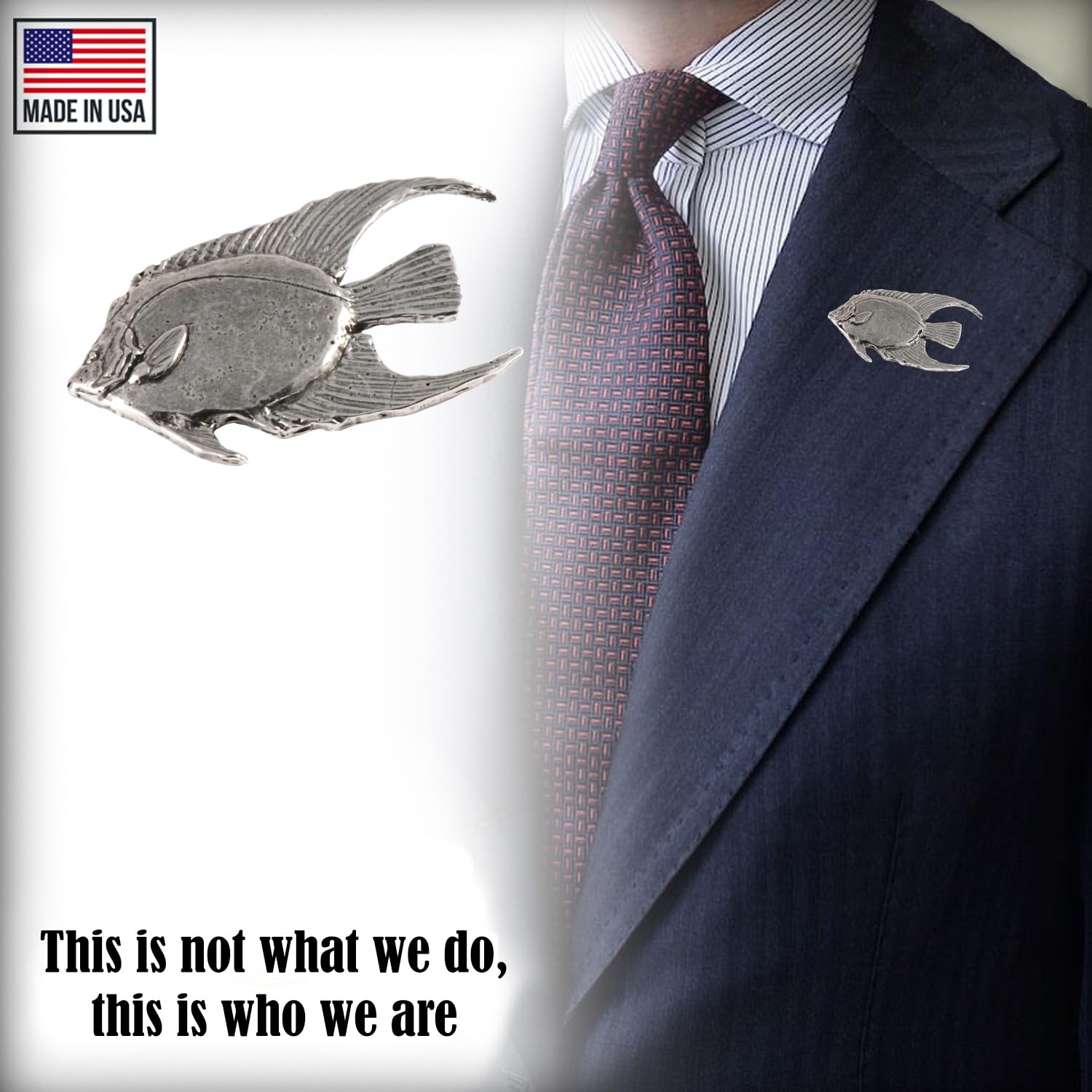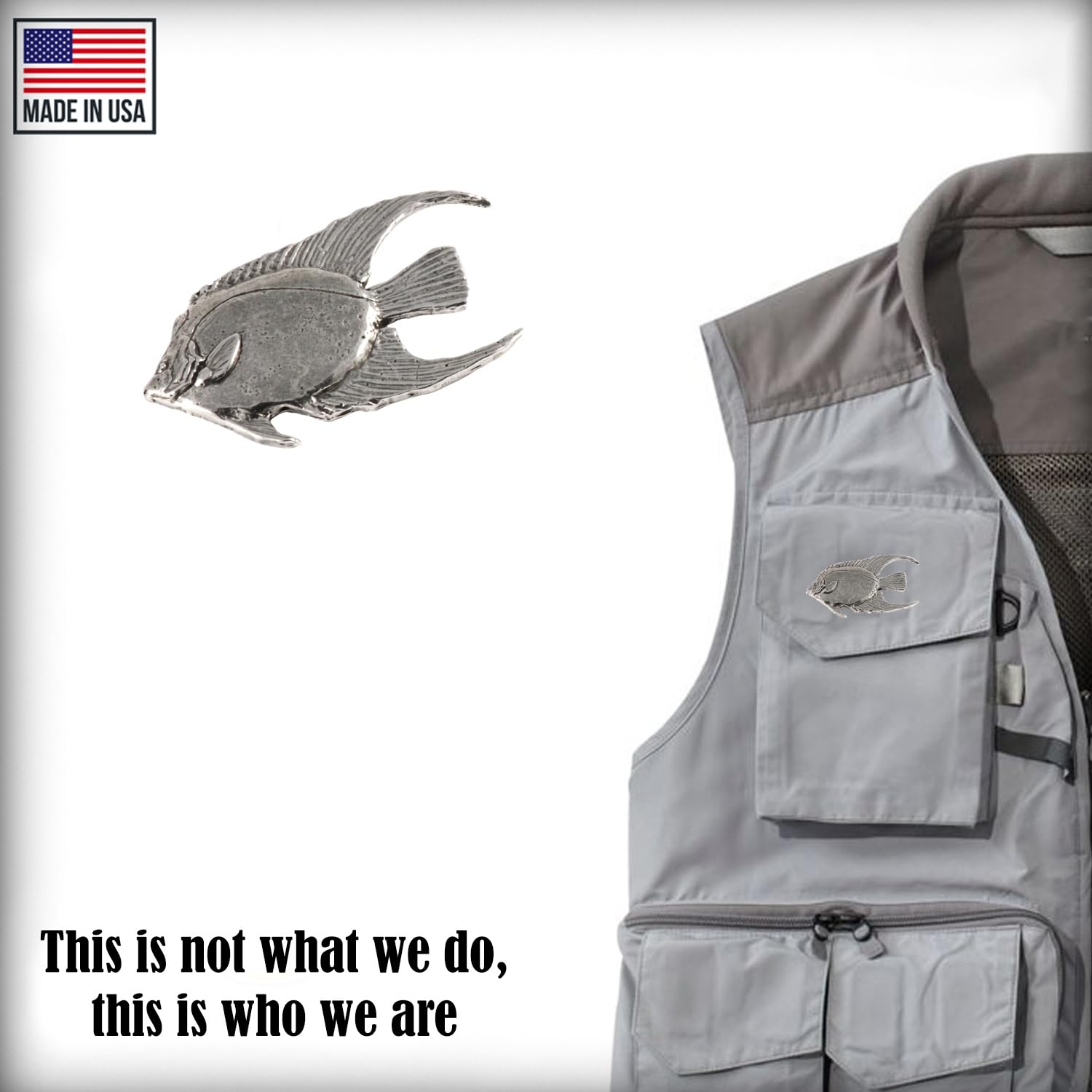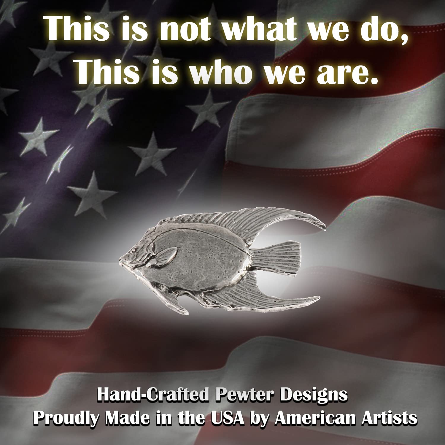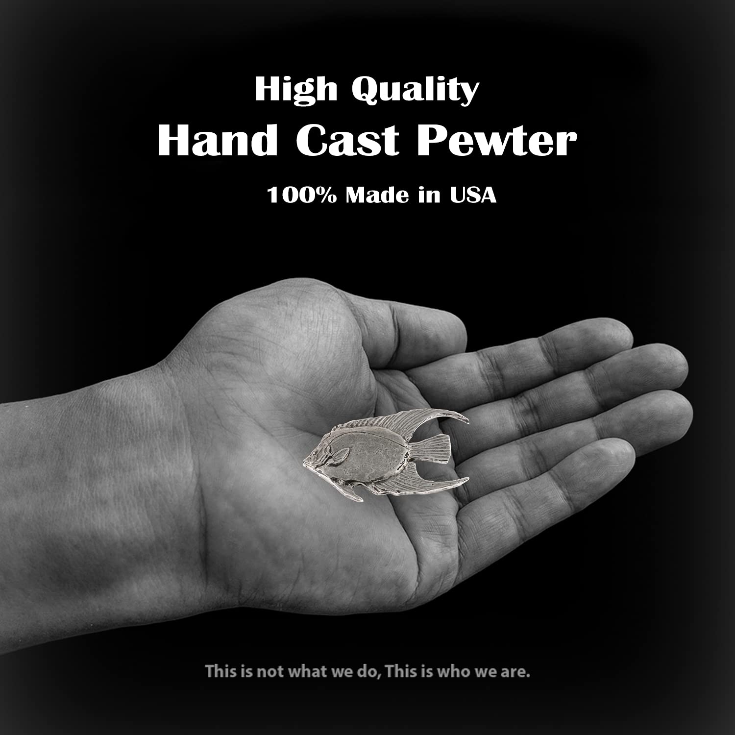 Creative Pewter Designs Handcrafted Tropical Fish Pins - including Angel Fish, Blue Tang, Butterfly Fish, Clown Fish, Lionfish, Opal Moonfish, Ruby Snapper Onaya, Parrot Fish, Trigger Fish, Mola Mola Ocean Sunfish and Manta Ray - and Sting Ray are proudly crafted in the USA by American artists. Most pins come in 4 different finishes: Pewter, Copper Plated, Gold Plated, and Hand Painted. Each pin is spin cast using the highest quality lead-free fine English Pewter before being individually finished and polished for a beautiful antique look. Pins are double tacked (military style) to avoid spinning. Creative Pewter Designs also offers over 1,200 other designs. Keychains, pins, magnets, ornaments, pendants, eye glass holders, and more. Every item is carefully inspected before being shipped with a 100% satisfaction guarantee.Our artwork makes the perfect gift for animal lovers, and outdoor enthusiasts.We appreciate your business! Our artists are proud to creat the finest handcrafted, lead-free English pewter designs. We are a small company, if you like our work, please share us with family and friends. We hope you enjoy!
