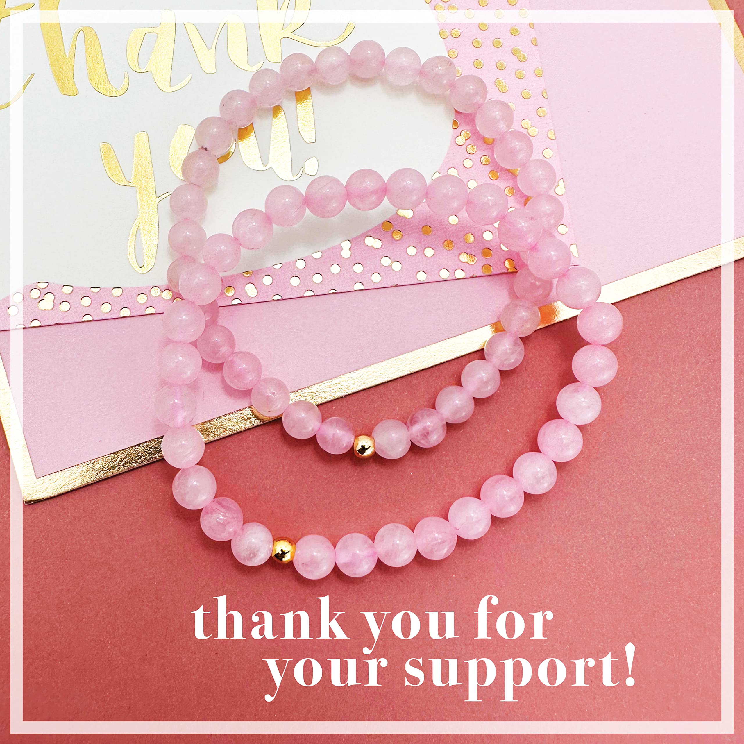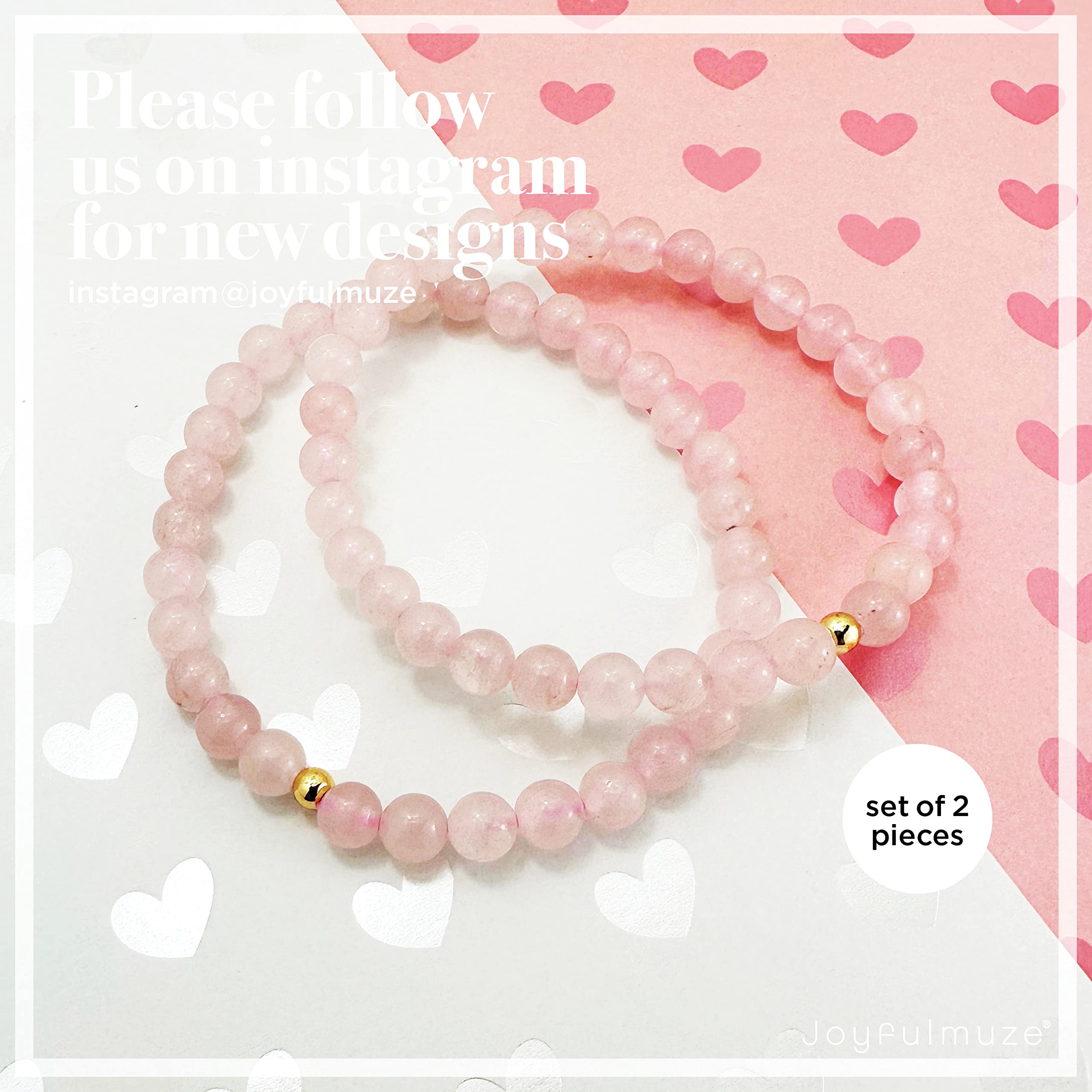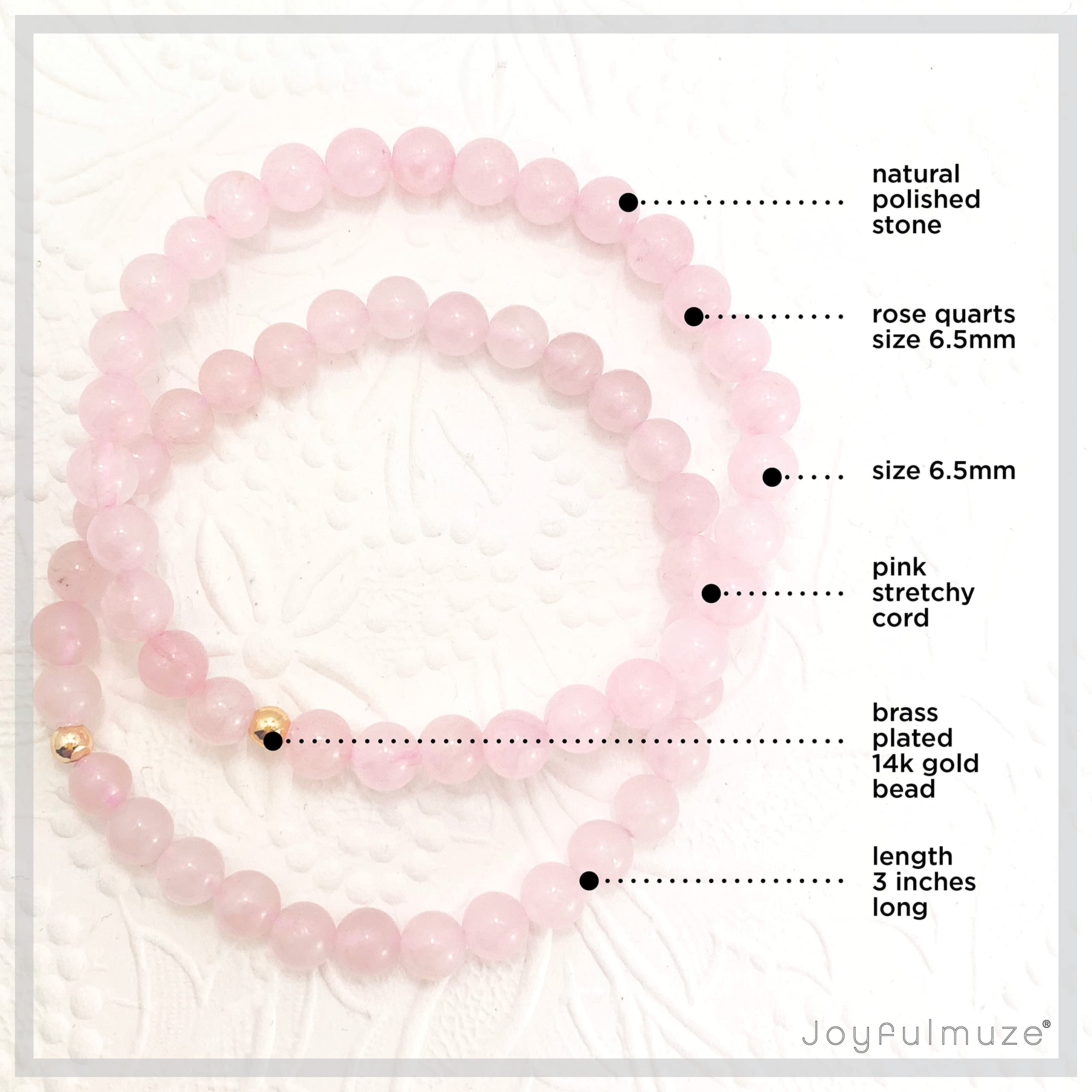 MATERIALS: Natural rose quartz beads are 6.5mm in diameter. Bracelets are 7.2 inches in length.
