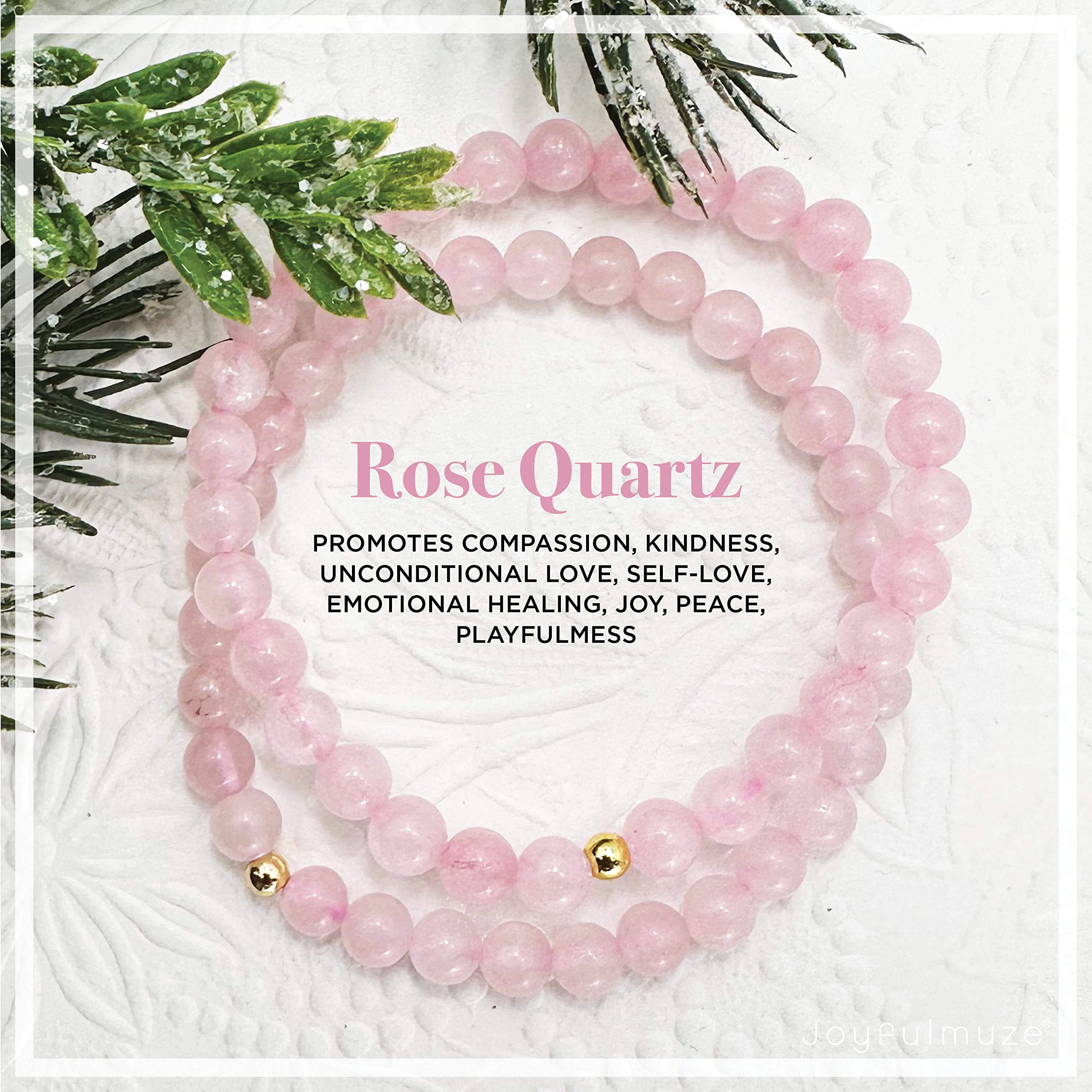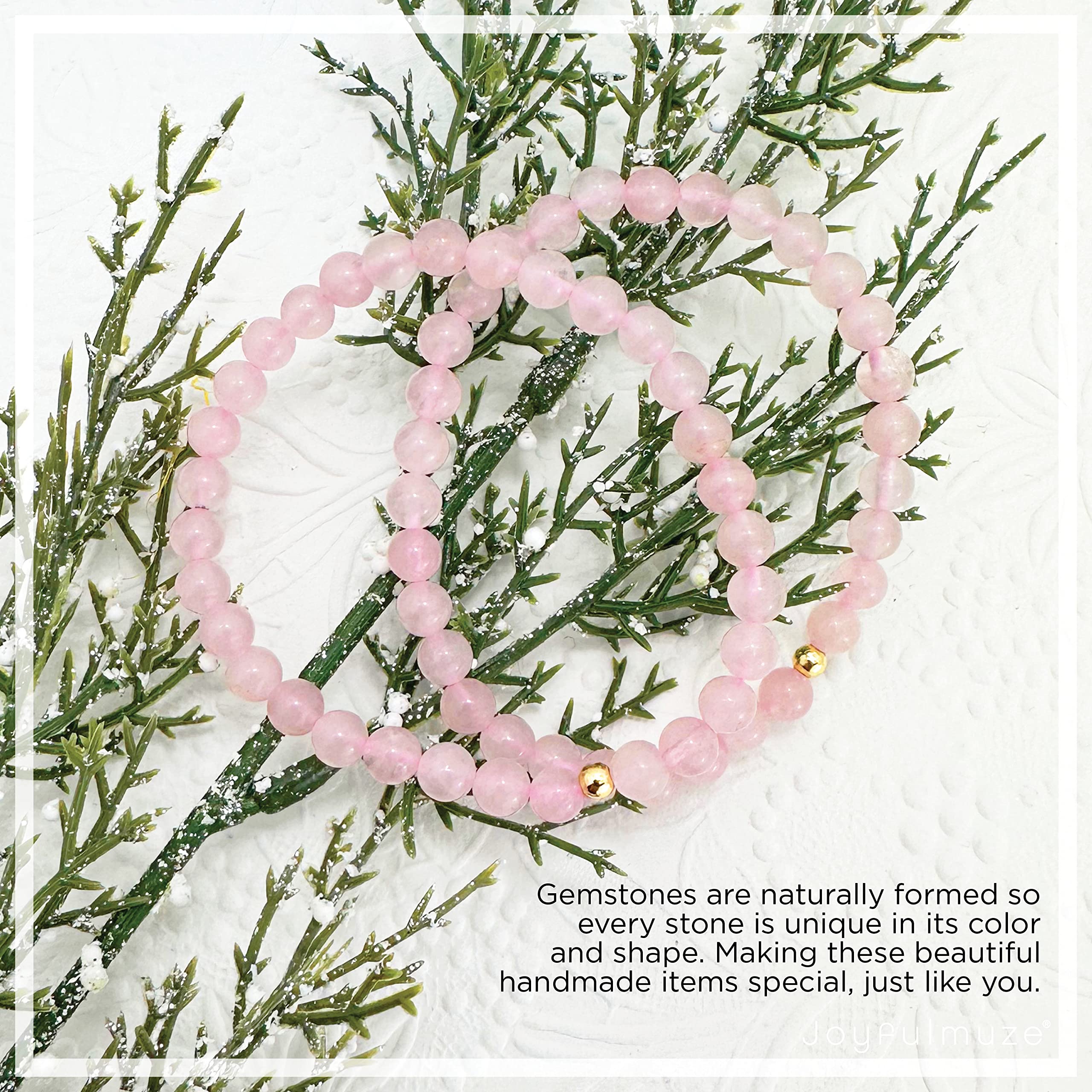 CALMING: Pure Stretchy Rose Quartz bracelets are Handmade in USA by Joyfulmuze.