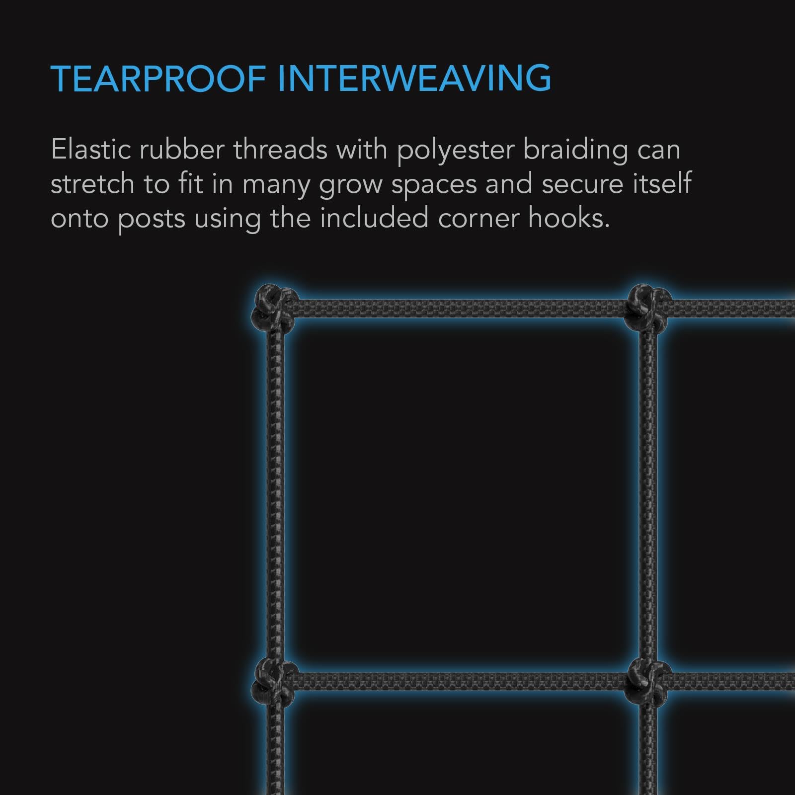 Versatile steel hooks securely clip the height-adjustable trellis net onto your grow tent's frame.