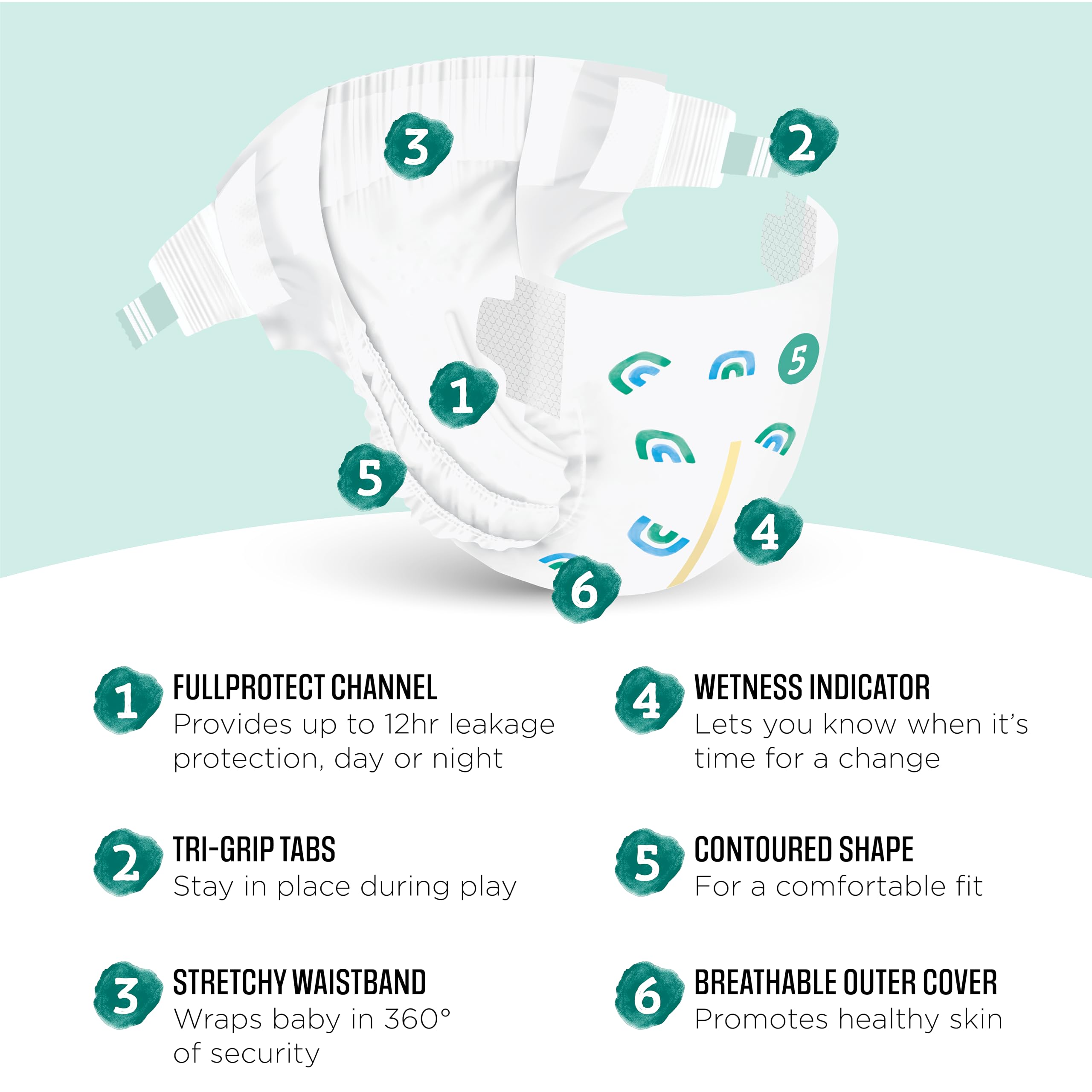 CURVED SHAPE & STRETCHY WAISTBAND: wraps baby in a comfortable fit with 360° of security with TRI-GRIP tabs
