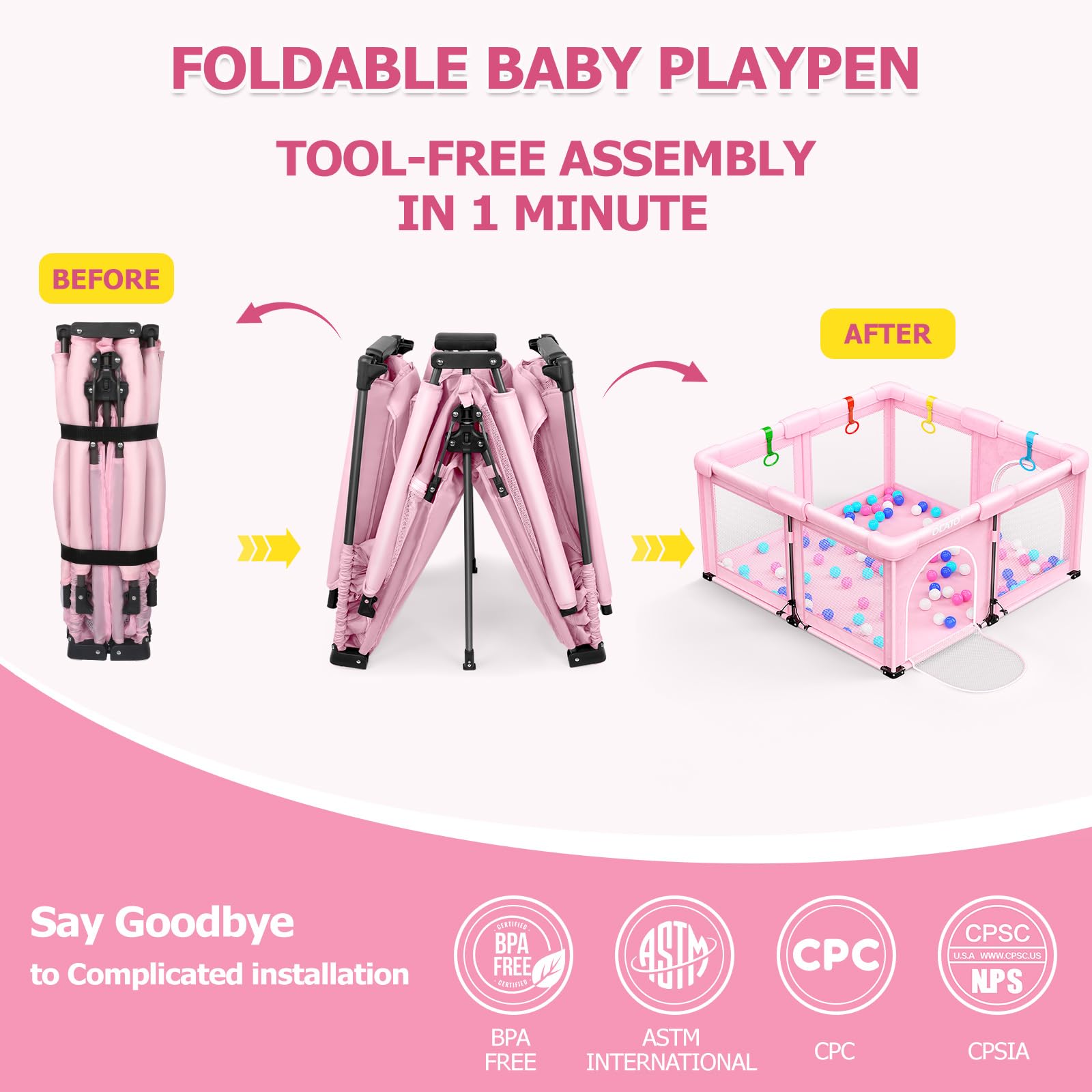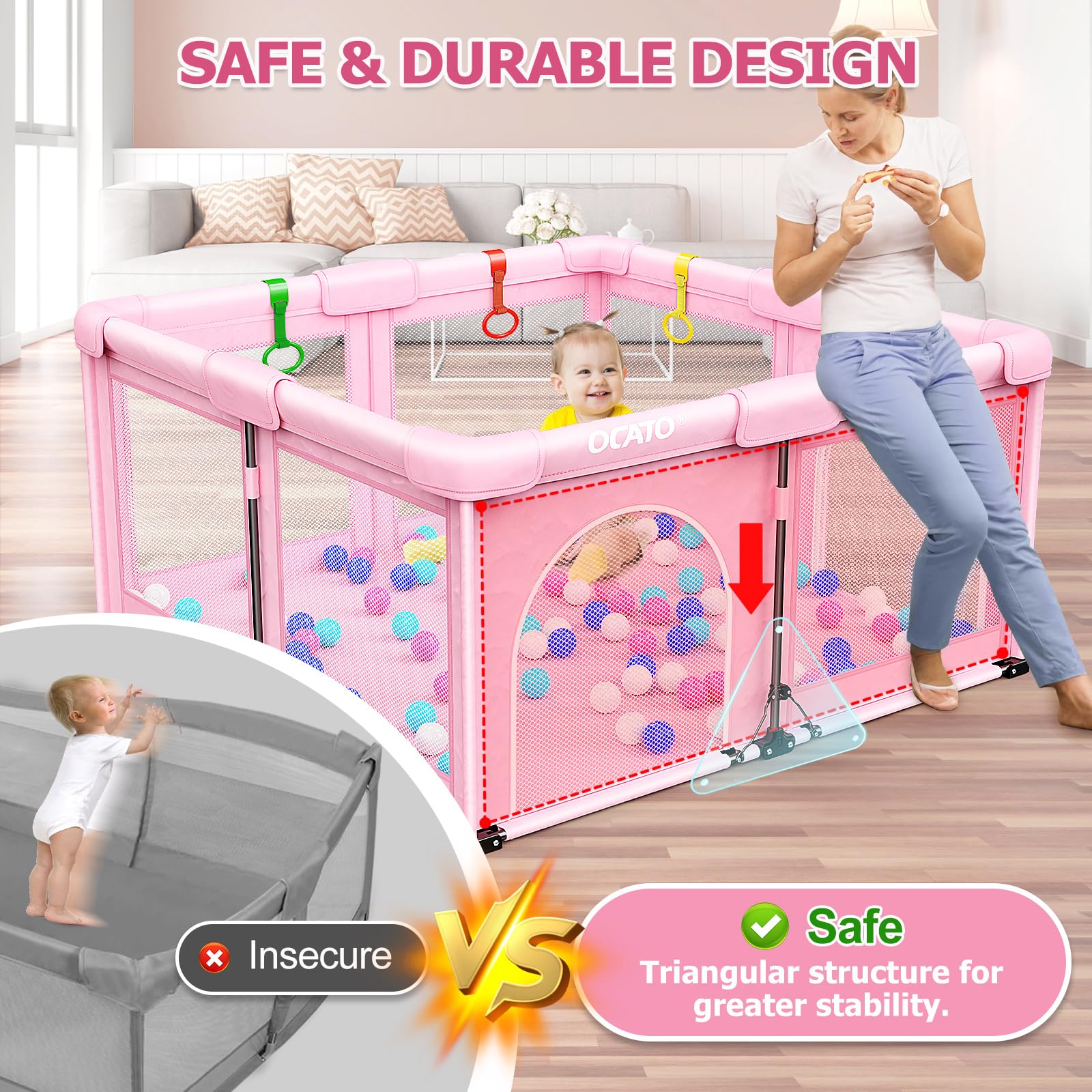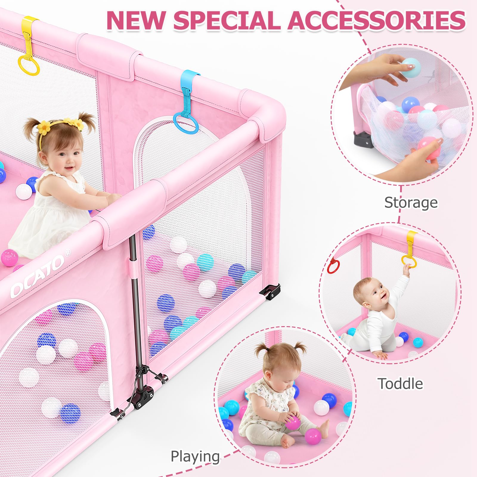 OCATO Baby Playpen: Foldable Playpen for Babies and Toddlers Large Play Pen Portable Playpen Fence Indoor Outdoor Kids Safety Area Travel Play Yard with 4 Handlers 50 Balls Baby Girl Gifts (50" × 50")