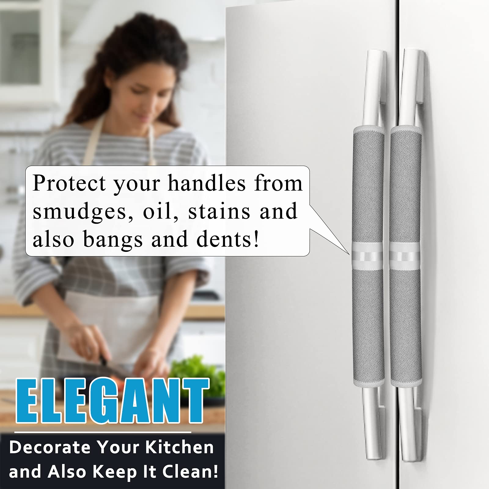 DON'T WORRY ABOUT SIZE: Due to our innovation, ELCOOR handle covers are suitable for almost all kitchen appliance handles, and they are easy to install, washable, sleek and form-fitting!