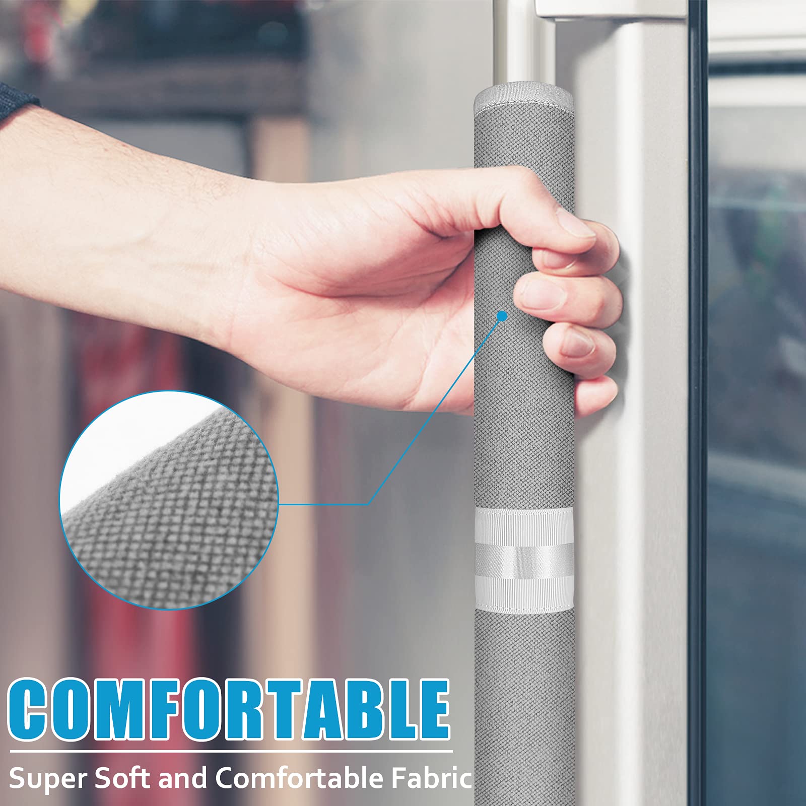 COMFORTABLE & ELEGANT: We use high quality Hook and Loop on the door handle cover that is easy to apply and not rough to the touch. Our fridge handle covers have a simple modern look and they dress up your kitchen elegant and immensely!