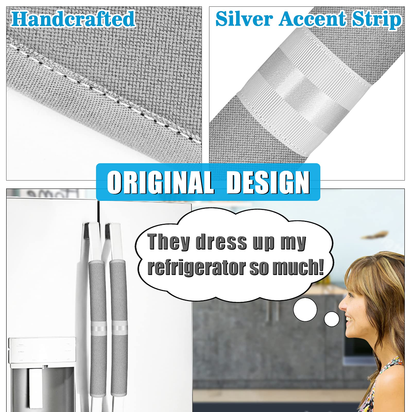 TIMESAVER & WASHABLE: They can really save your cleaning time! These refrigerator handle covers are the perfect solution to help keep your appliances’ handles free and clear of handprints, stains, oil and grease, or smudges. You can simply wash them when they get too dirty.