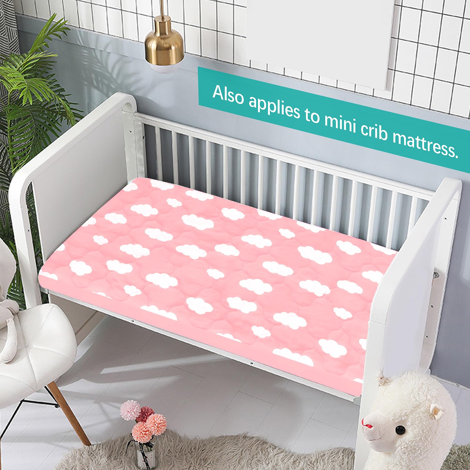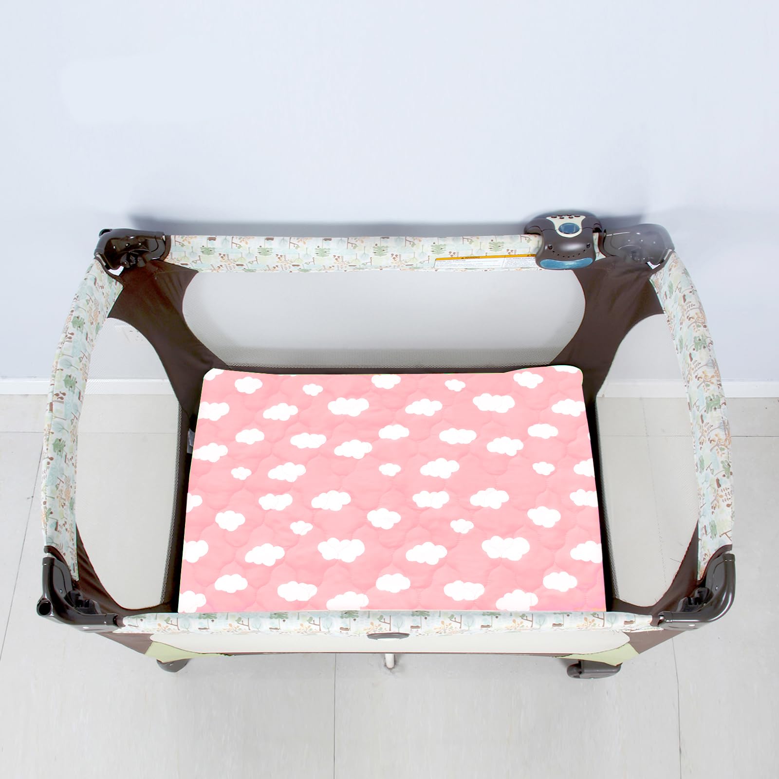 Quilted & Ultra Soft: Mattress protector for pack and play with ultra soft microfiber fabric surface and extra thick padding including friendly fiber filling for your little feel comfortable, Special for your little one's sensitive skin. No more worry for leaky bottle messes, or potty training misses.