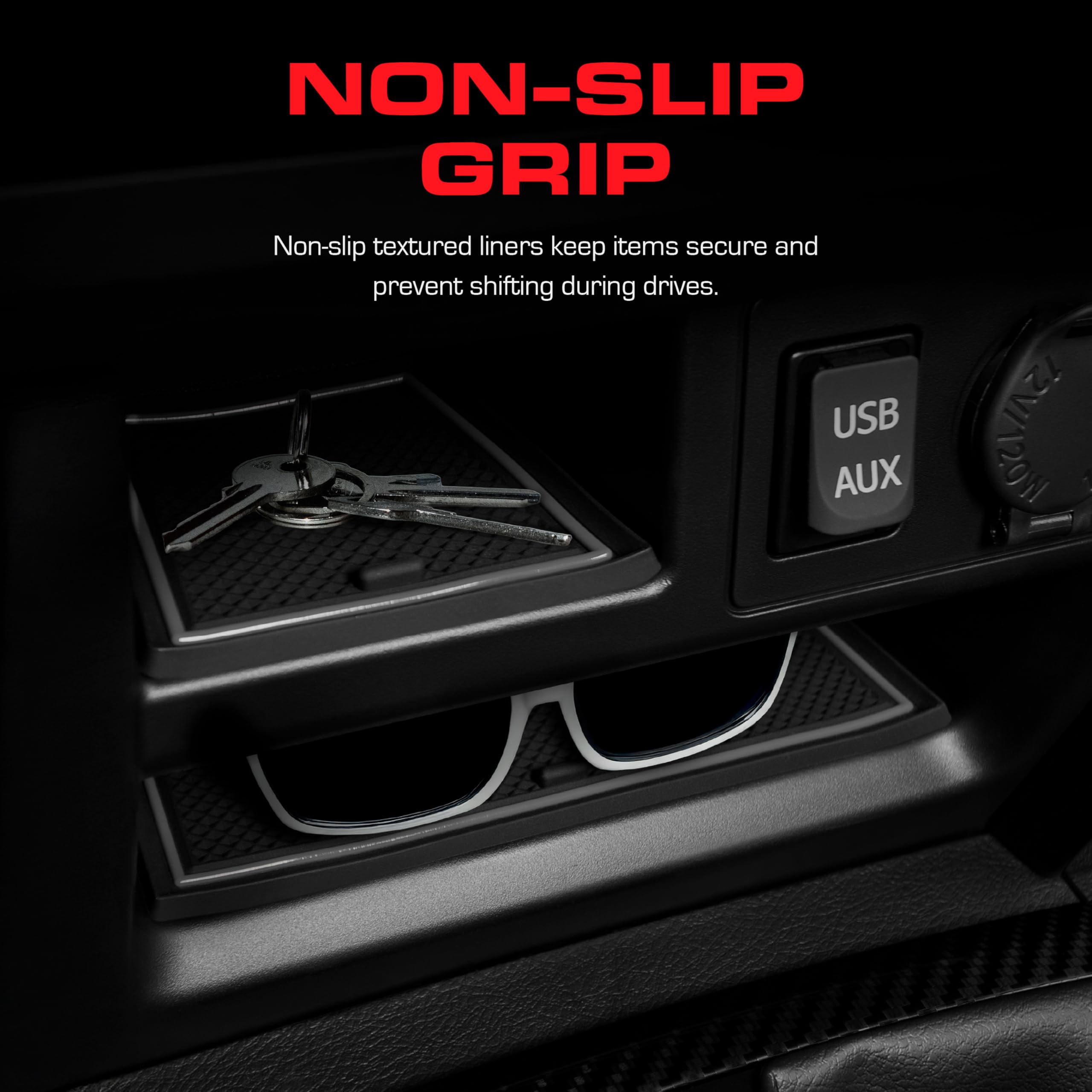 ✅SAVE TIME & MONEY ON CAR WASHES and detailing your Toyota 4Runner compatible interior. Our protective liners are specially designed with a 3D texture that catches spills and a double raised edge to contain them. The non-slip bottom clings to your cupholders and console areas so they stay in place when you lift up your slurpee, and the built in handle makes for easy removal and cleaning